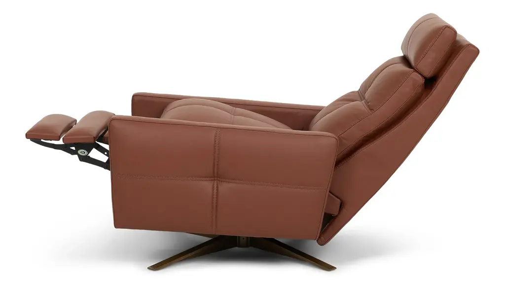 Meet Rainier Echo Recliner-where the look of the comfort meets the familiar feel of the traditional recliner. Rainier's oversized, asymmetrical double-needle channel quilting on the exterior arm and seat back creates a consistent, seamless look to compliment your living room.