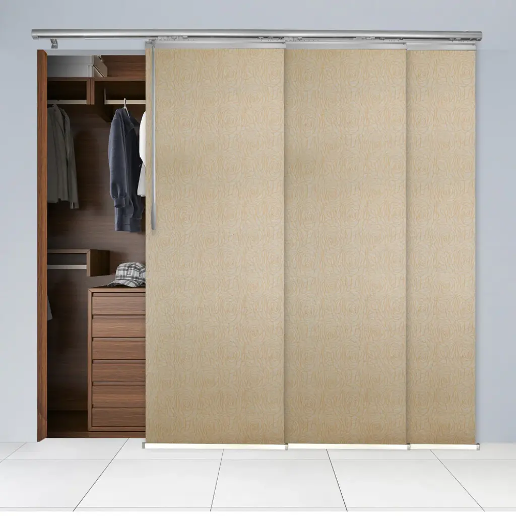 Central Design Products is pleased to introduce a new innovative panel track that offers easy 2-way installation, adding an alluring style and refined touch to your home decor. The single rail design of the track is sleek, compact, and reduces the overall footprint and weight of the installation, eliminating bulky, intrusive window treatments. Adjusting the panel height is a breeze � simply trim the panel, re-attach the liner, and install the panel weight. Detailed instructions are included.The panel track also features a patented slider design, made with aluminum and fitted with bearings that allow for durable and smooth operation. The sliders are stacked closer together than conventional panel tracks, reducing light bleed coming from the gaps between panels. This track has endless uses from dividing rooms, garages, offices, and closets to decorating windows and patios. Available in larger sizes including 8, 10, and 12 panels. Extends from 36-66� wide. Each panel measures 23.5" wide and 91.5" tall, with a total installation height of 94" (includes the 2.5" rail track). The track can be wall or ceiling mounted. The panels can stack on the left or the right. The clearance from the wall is extendable from 1.25� to 3.25� and projection from the wall is extendable from 3� to 4.25�. Raisa panel is made from 100% Polyester, with a light filtering shade that blocks 70% of the light.