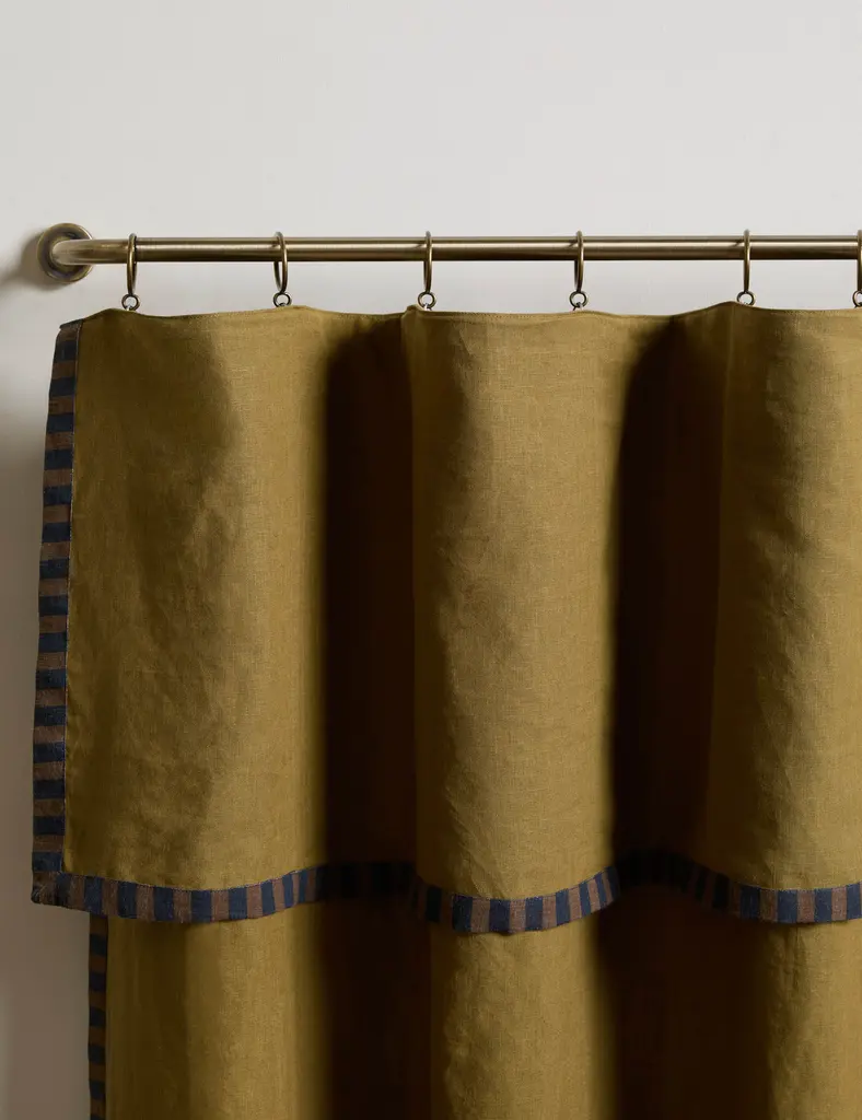 This curtain pairs lightweight linen with a striped border for a look that's airy yet crisply defined. The sheer fabric softens the light, while the tailored edge brings a clean finish to the room. This window treatment is from our exclusive Sarah Sherman Samuel collaboration and features all the trademarks of her warm, edited style.