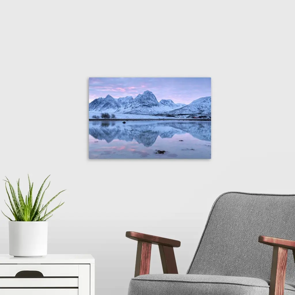 Rakeltinden Is Reflected In The Fjord. Storsteinnes, Norway