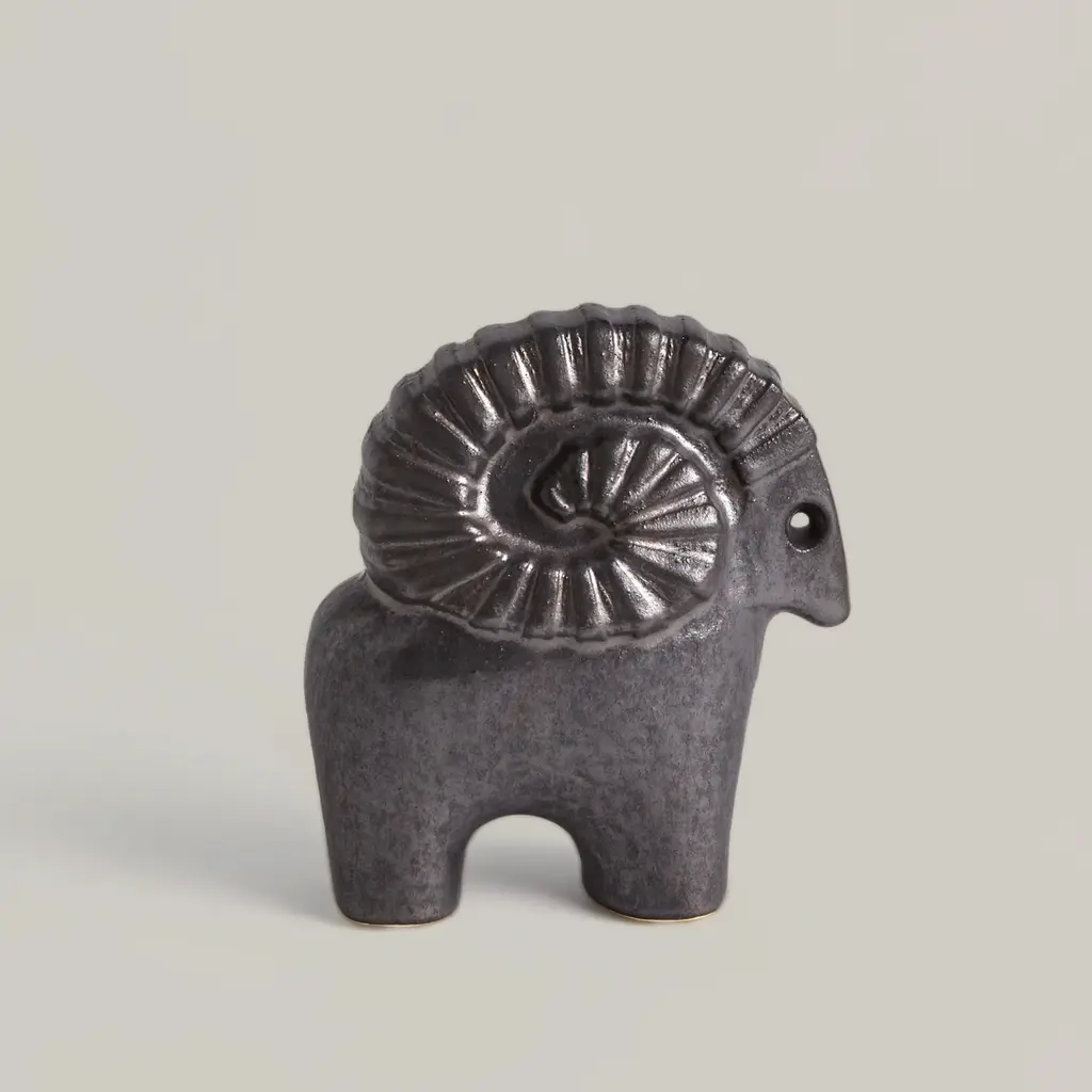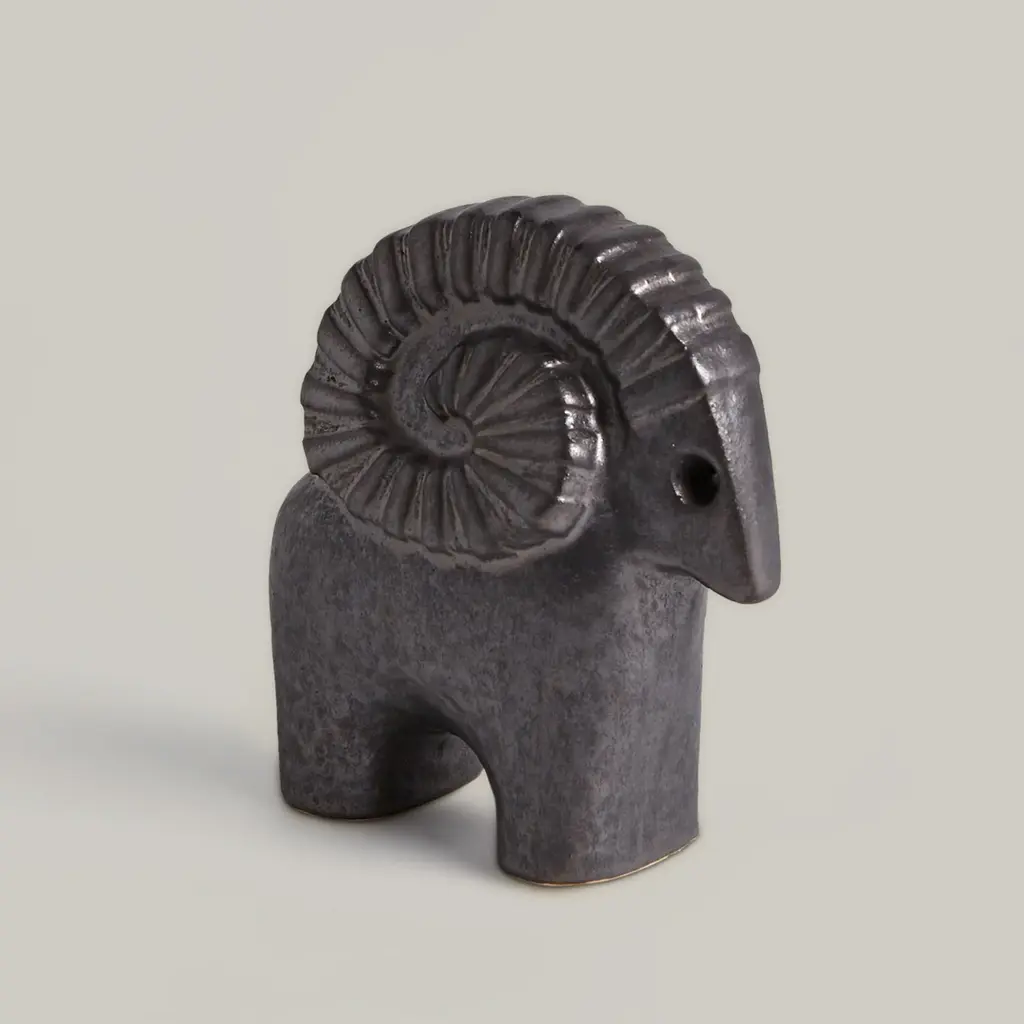 Building on a long Lemieux Et Cie tradition of a hip menagerie, we welcome the Ram. Modeled by hand in clay and then glazed in a textured black finish, this chic critter will liven up any surface.