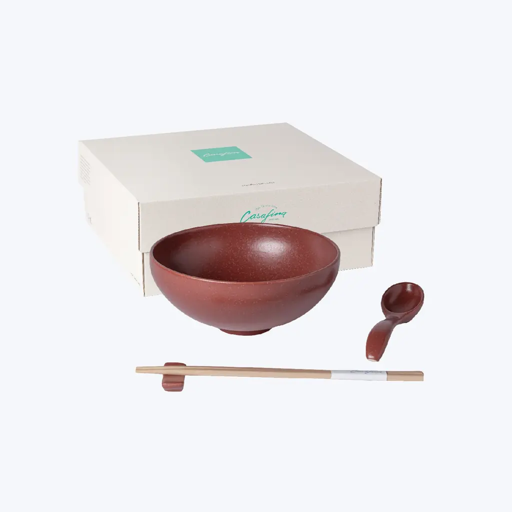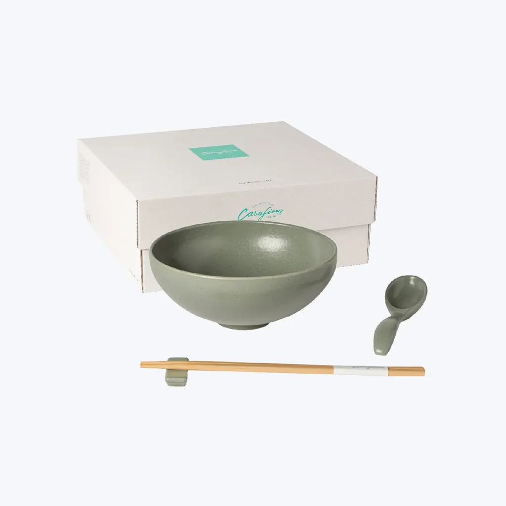 A lovely gift for the ramen enthusiast in your life, this Ramen Gift Set includes a colorful ramen bowl, spoon, chopstick set, and chopstick rest. Showcasing a matte finish, this ramen bowl works well for everyday meals and weekend casual gatherings.