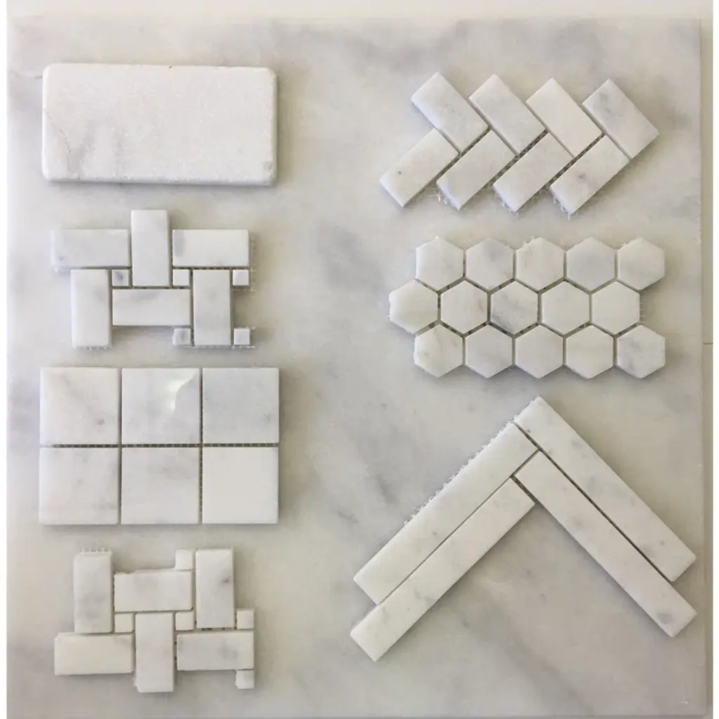 Random Sized Marble Basketweave Mosaic Wall & Floor Tile