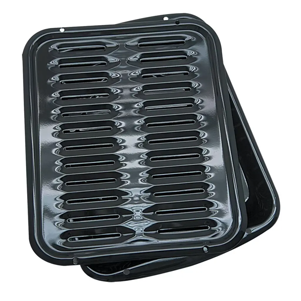 Range Kleen 2Pc Broiler Pan Set With 1 Bp102x & 1 Bp106x & 1 Scrape And Kleen: Steel Grill Pans, Broiler-safe, Black