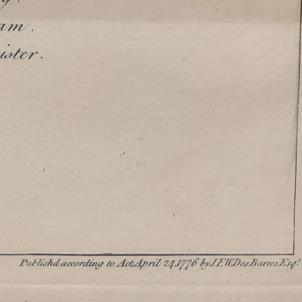 Rare 18th C, Map titled "A plan of the town of Newport in the province of Rhode Island". Earliest printed plan of Newport, published for the use of the British just prior to their occupation in 1776. Issued in the Atlantic Neptune, an atlas of North American waters published by J.F.W. Des Barres 1776.Great condition, professionally mounted and framed. Measures 29-1/2" by 21" sight, 37" by 27-3/4" framed.