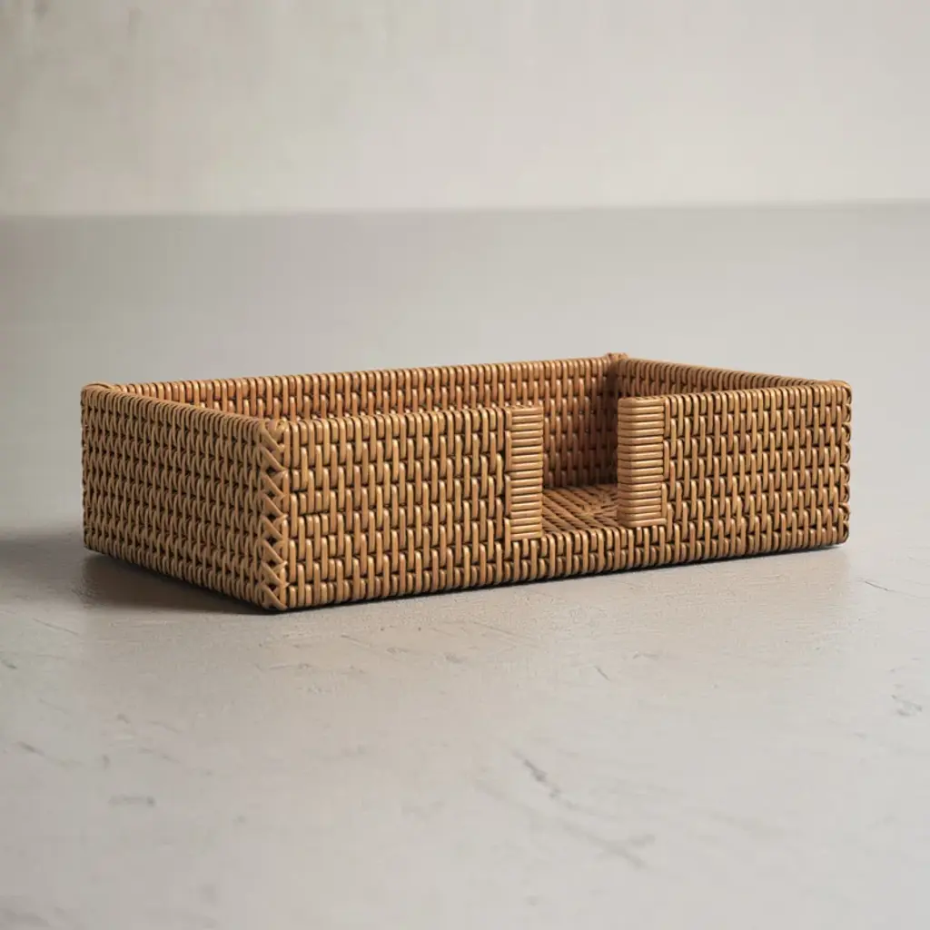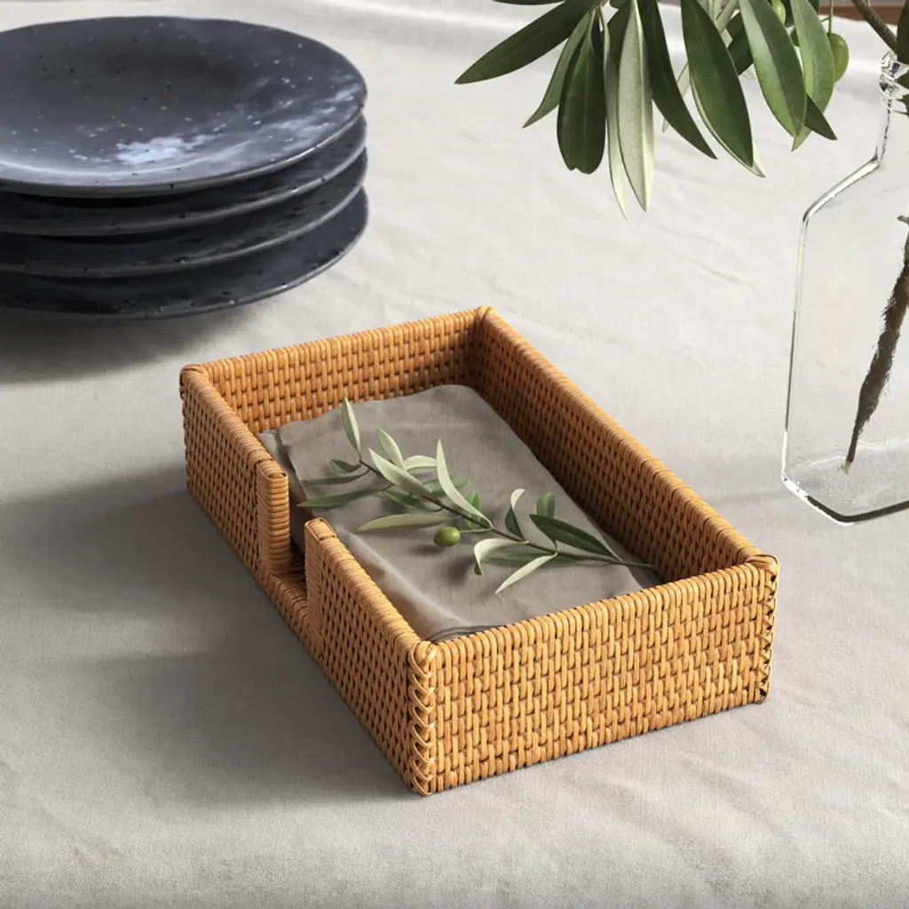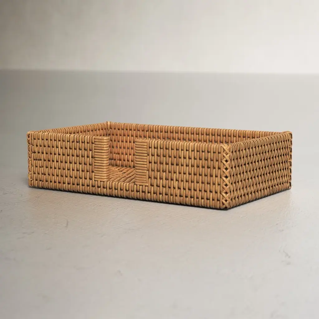 Artifacts Trading Company's hand woven napkin holders provide the perfect accent to any room in the house with a tight weave, durable construction, with exquisite and impeccable quality. Woven from Burmese rattan which is natural and sustainable, our napkin holders come stained in a rich color to provide a sophisticated and perfect finishing touch. Products are handmade and each piece is unique therefore slight variations and imperfections exist. Artifacts Trading Company manufactures a great line of rattan items for your table and home.