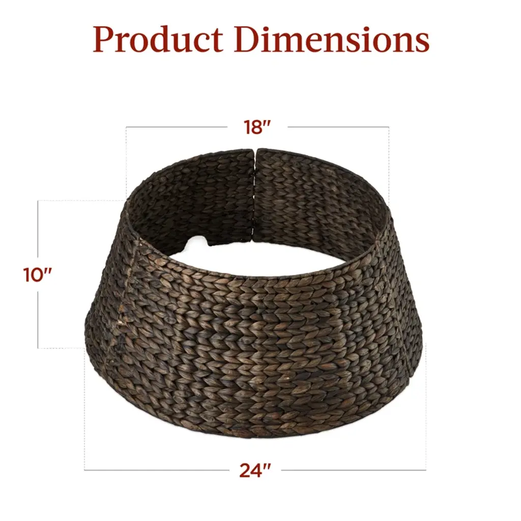 Upgrade Your Tree Display with our 24-inch Tree Collar! Crafted from durable, naturally flexible hyacinth in a woven braid pattern, this collar adds rustic charm to your festive setup. The cord cut-out ensures tidy cord management, while easy assembly and storage are facilitated by alternating hooks and receivers. Suitable for trees 4.5ft-7.5ft tall and bases up to 23 inches in diameter. Embrace seasonal style with the elegant design of this tapered collar, enhancing any tree with its refined appeal.