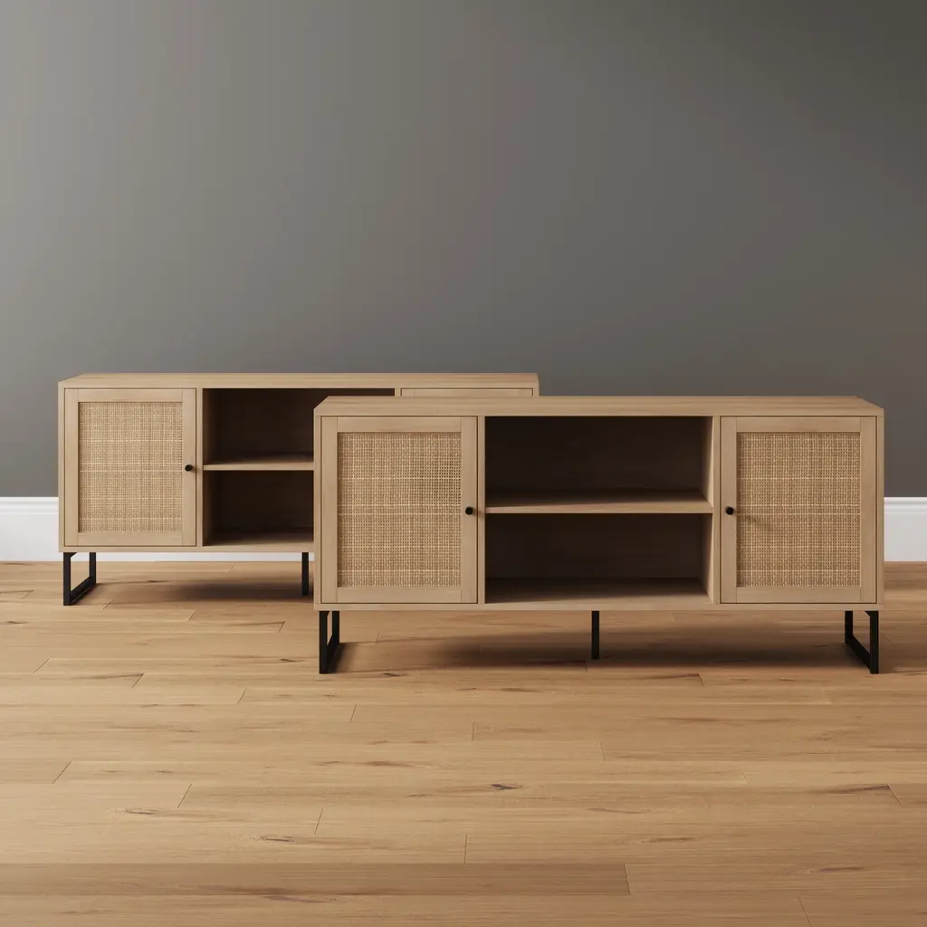 Rattan Tv Console Credenza Light Oak (Set Of 2)
