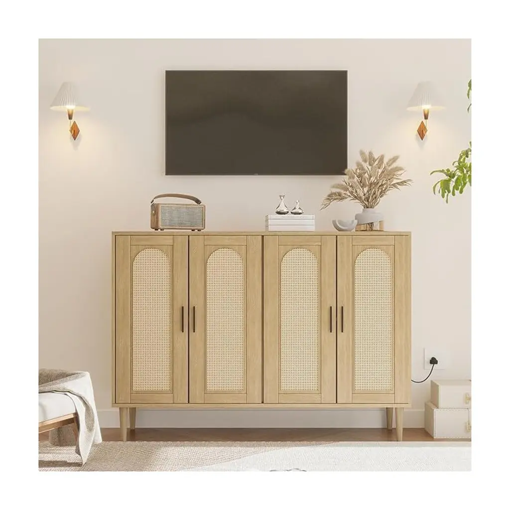 Rattan Tv Console Credenza Oak (Set Of 3)