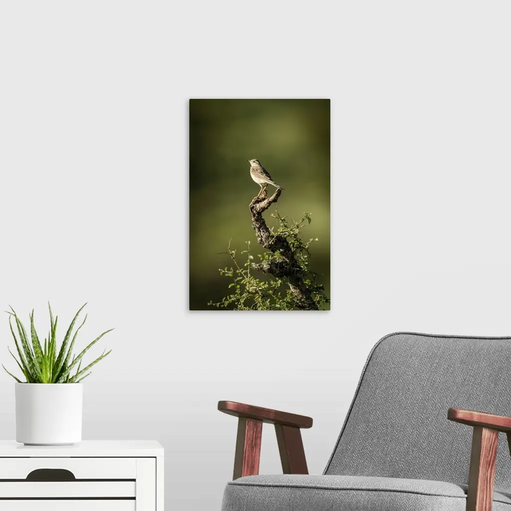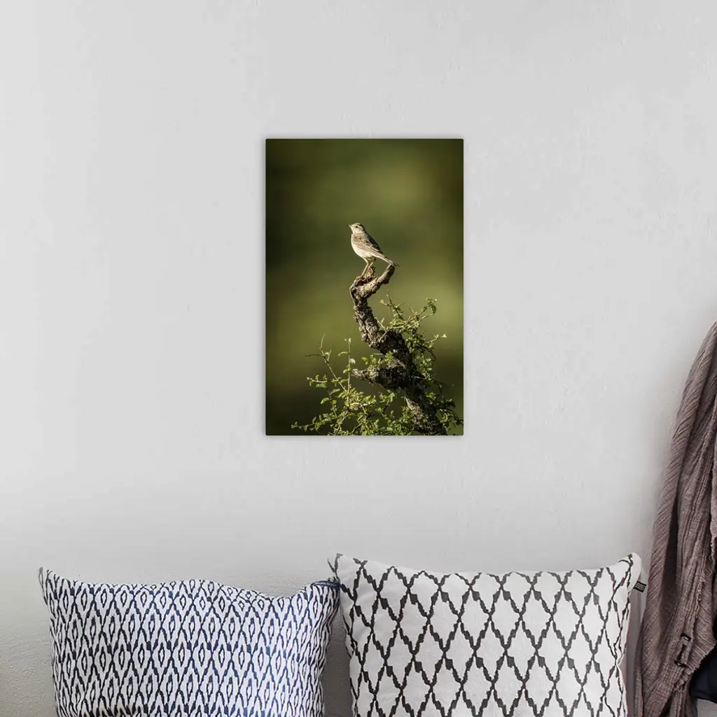 Rattling Cisticola Perches On Leafy Tree Stump, Serengeti, Tanzania