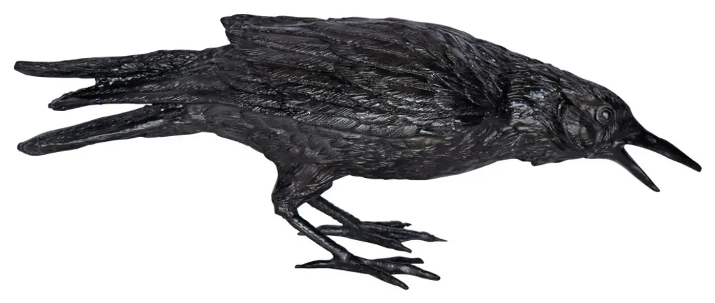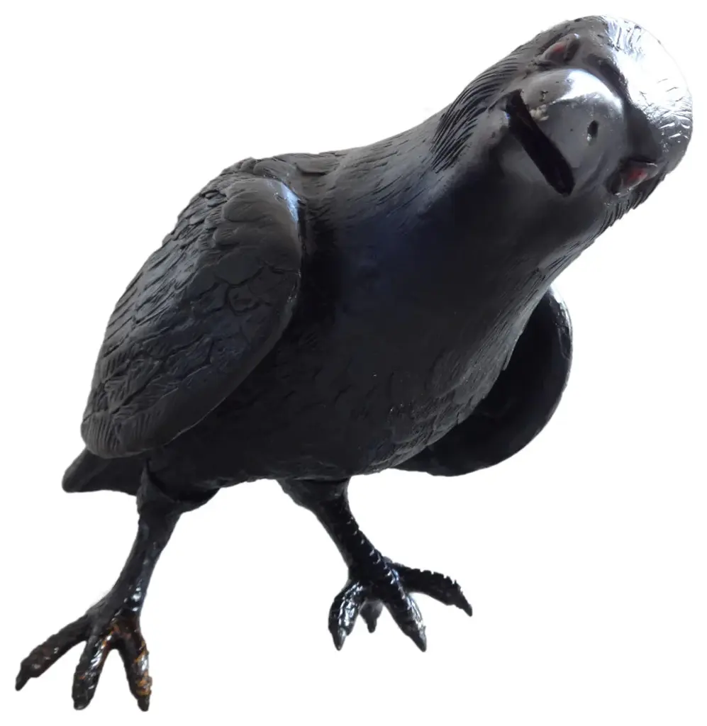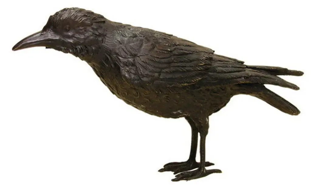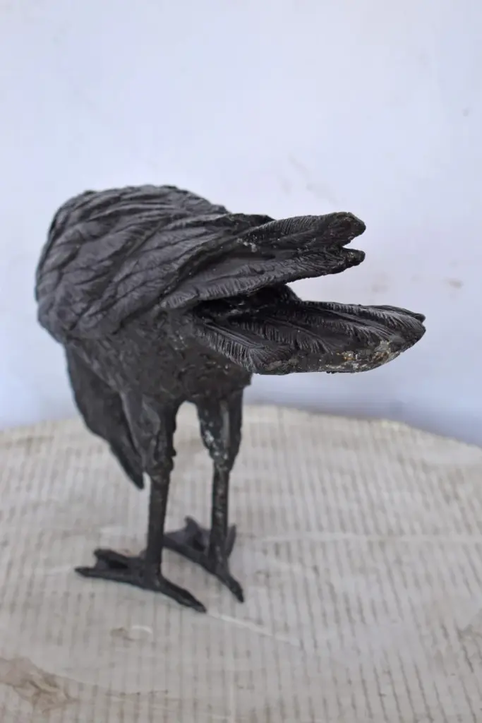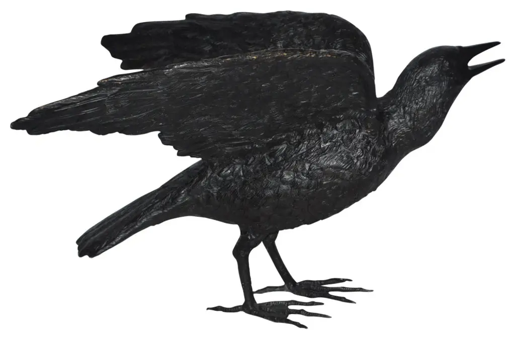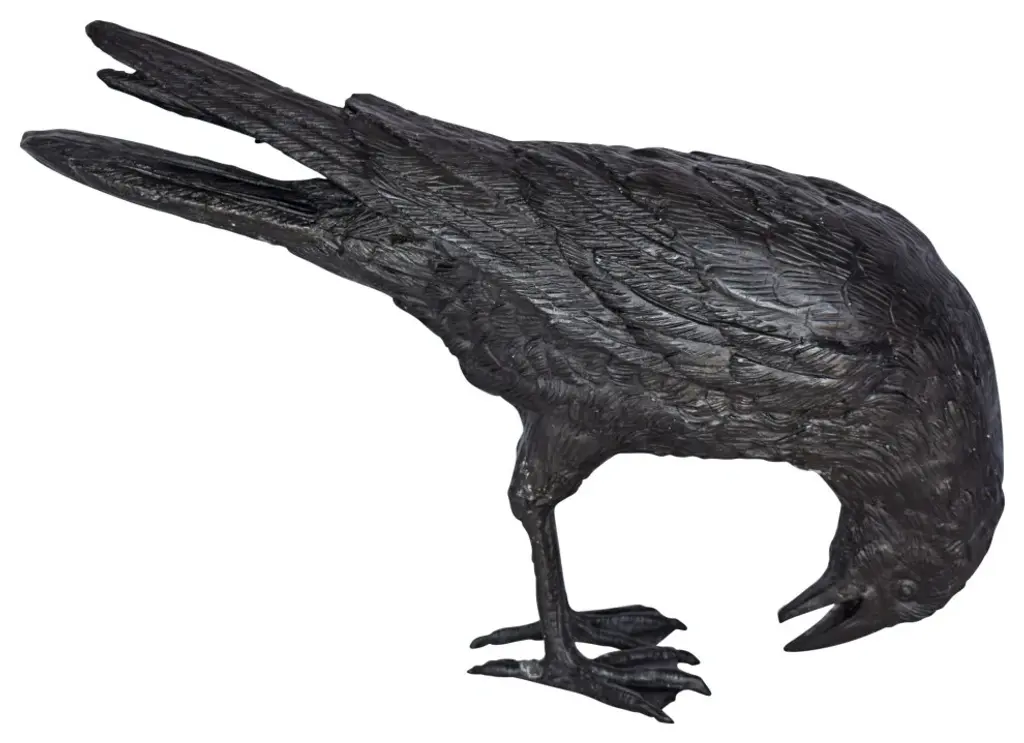 A Lifesize raven bird looking down at the ground for insects, bronze statue. Also known as the western raven found across the Northern Hemisphere, it is the most widely distributed of all corvids and is possibly the heaviest passerine bird. Please pay close attention to the details of this statue. This bronze statue is cast in the traditional lost-wax method, which highlights the exceptionally fine detail and guarantees lasting heirloom beauty. This bronze statue would look adorable in any space of the home of any bird lover. Size: 19"L x 5"W x 11"H. Weight is: 9Lb