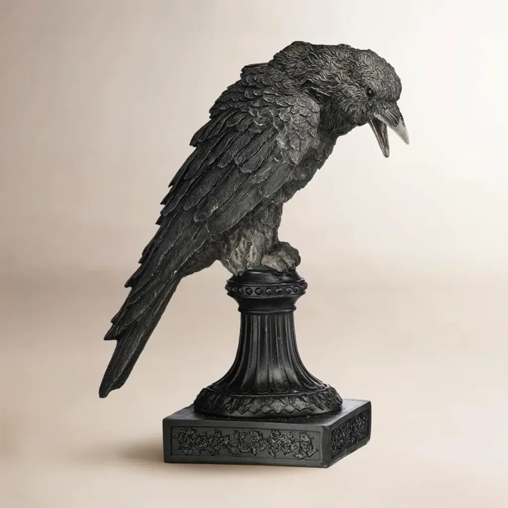 Raven Looking Down Bronze State - Size: 19"l X 5"w X 11"h.