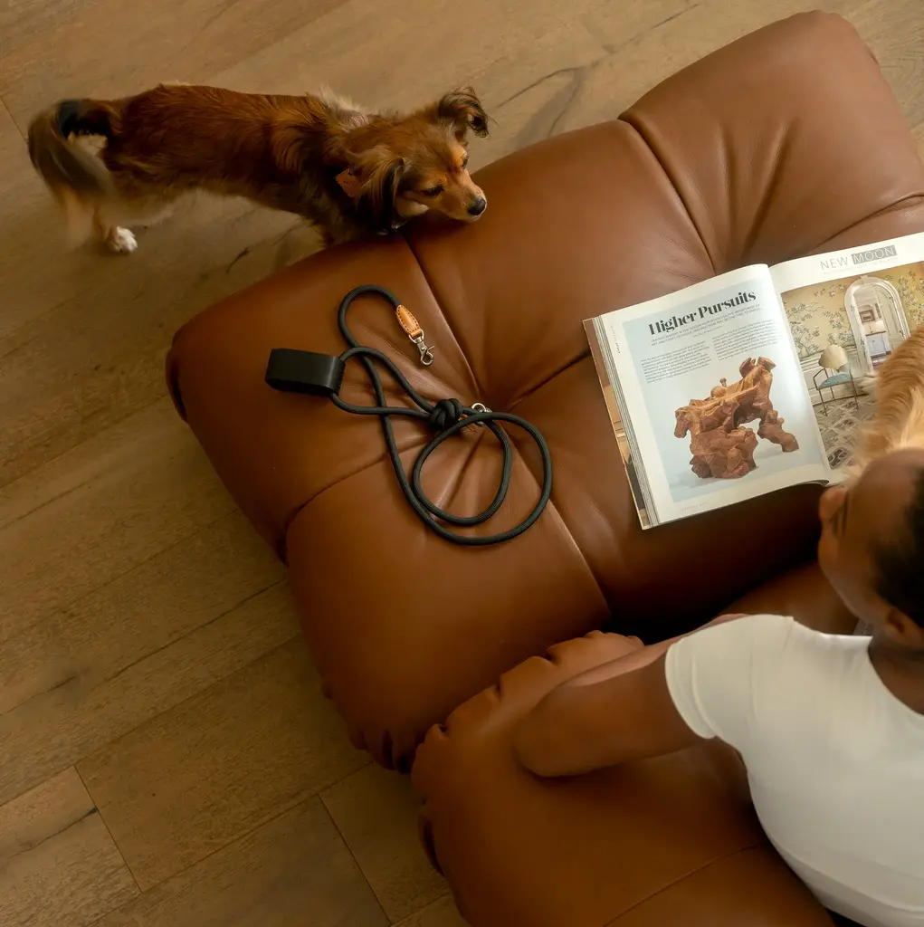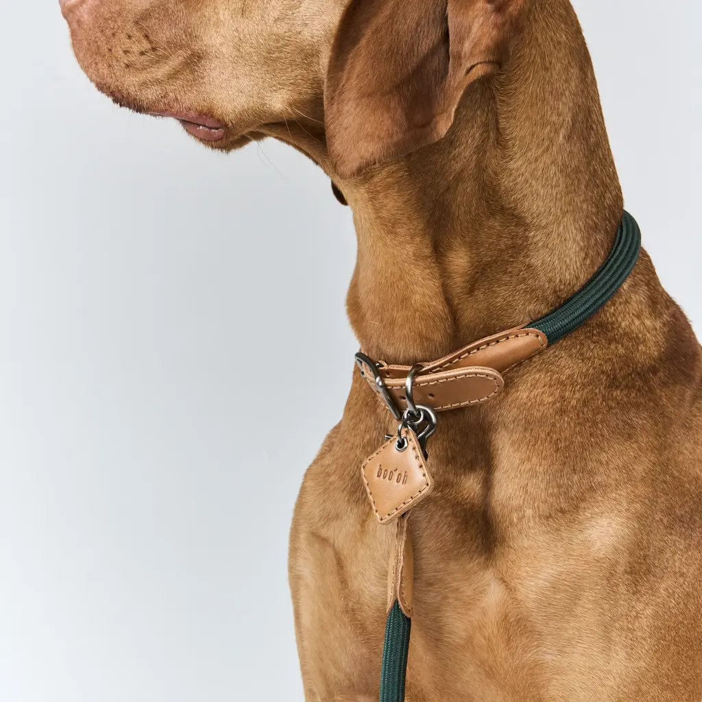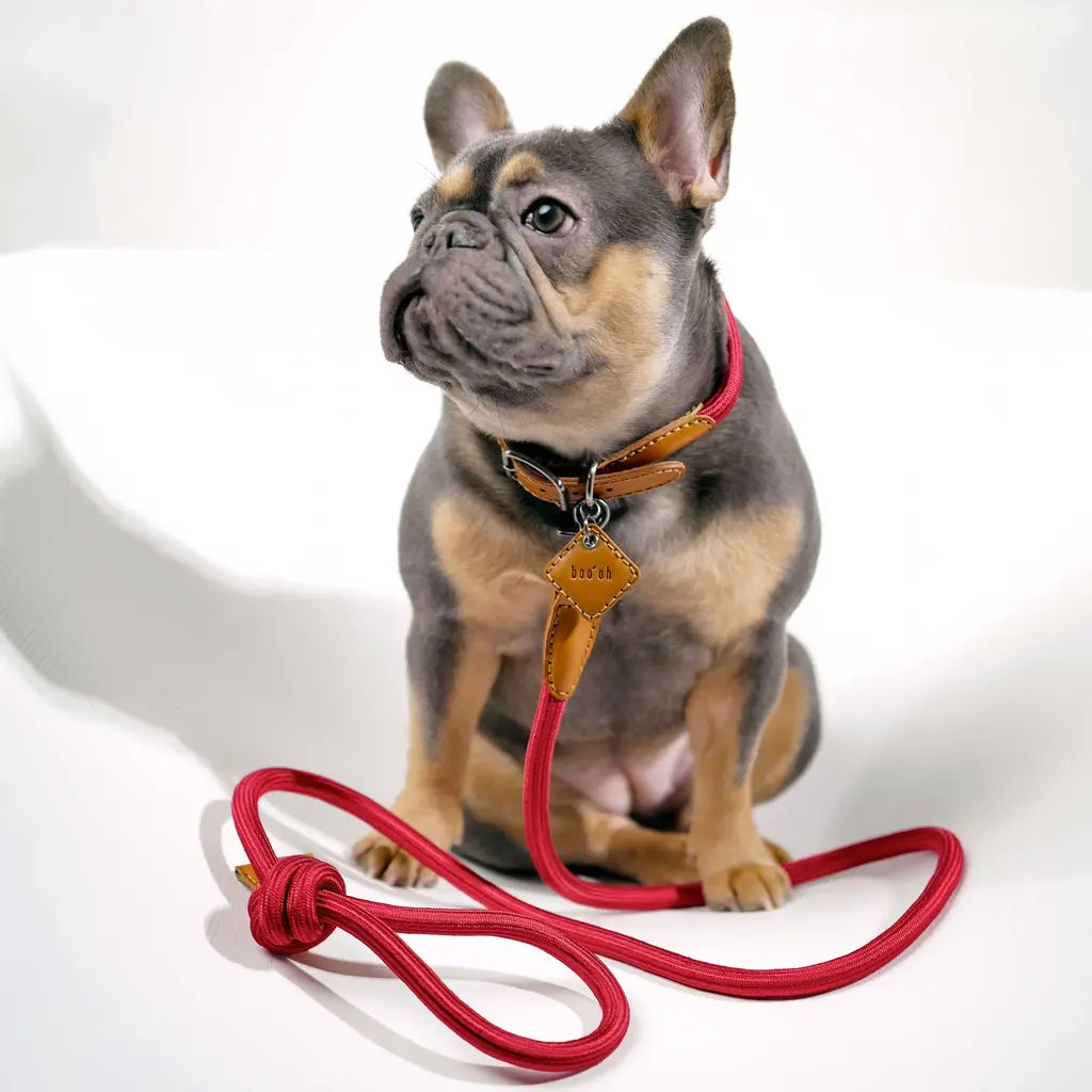 The Ray Collar and Leash Set from Boo'oh Pets combines refined elegance with practical design for your beloved dog. Crafted from premium Italian Buttero leather, known for its soft touch and timeless appeal, both collar and leash are enhanced with a custom rayon silk rope for added comfort and style. The collar offers innovative ID tag options: a modern QR code tag for secure, scannable access to your pet’s information or a classic engraved tag with personalized details. This set ensures your dog looks sophisticated while staying safe and easily identifiable. Highlights