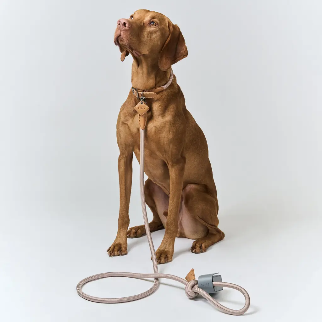 The Ray Leash from Boo'oh Pets offers a refined combination of elegance and practicality for your cherished dog. Made from premium Italian Buttero leather, prized for its soft texture and timeless appeal, it is enhanced with a custom rayon silk rope that delivers both comfort and sophisticated style. This leash ensures your pet’s walks are as stylish as they are secure. Highlights