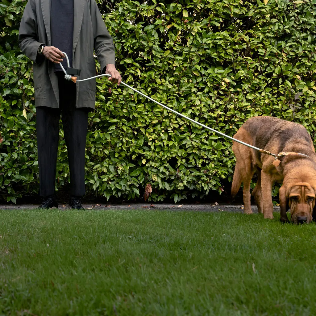 The Ray Leash from Boo'oh Pets offers a refined combination of elegance and practicality for your cherished dog. Made from premium Italian Buttero leather, prized for its soft texture and timeless appeal, it is enhanced with a custom rayon silk rope that delivers both comfort and sophisticated style. This leash ensures your pet’s walks are as stylish as they are secure. Highlights