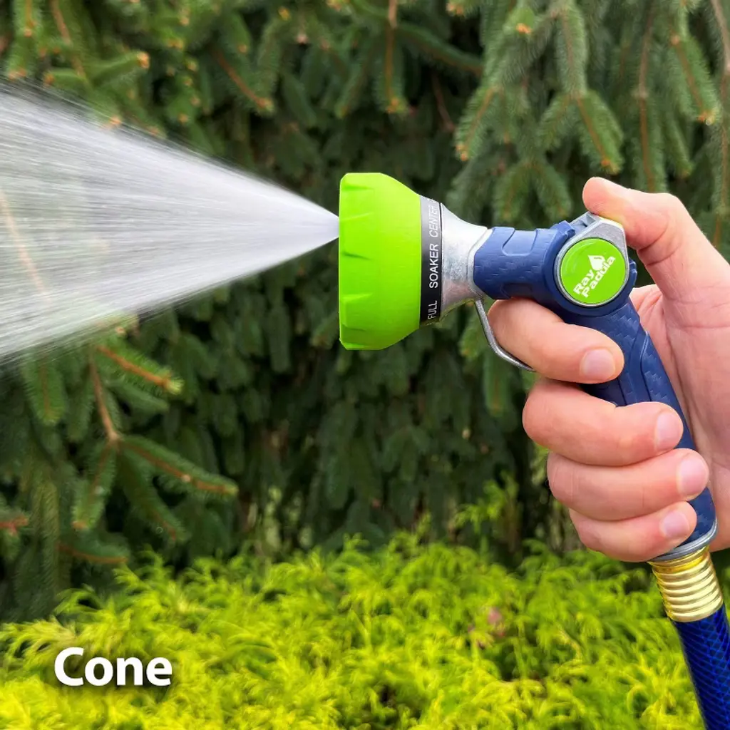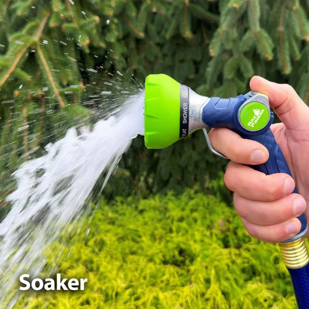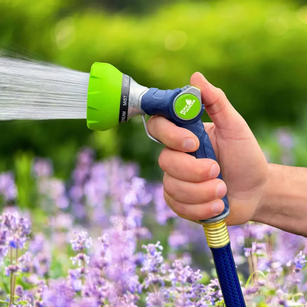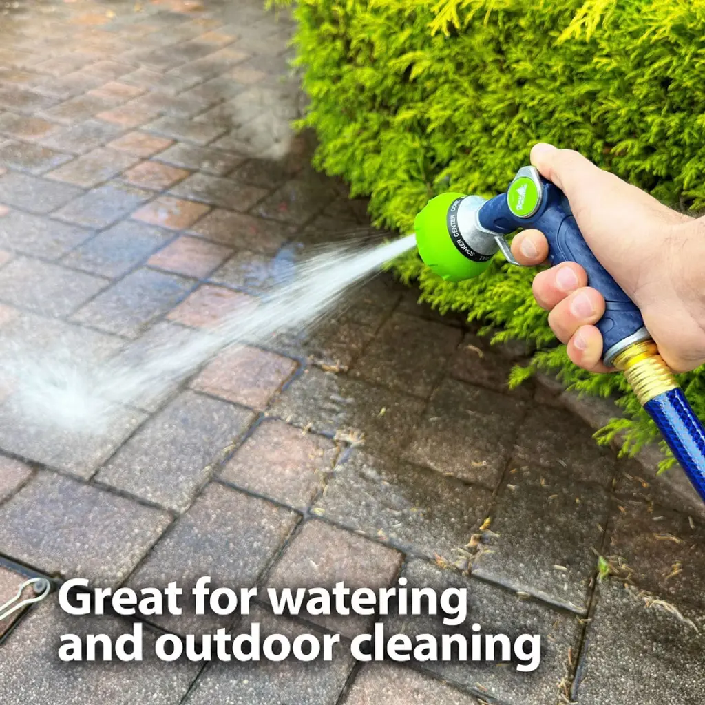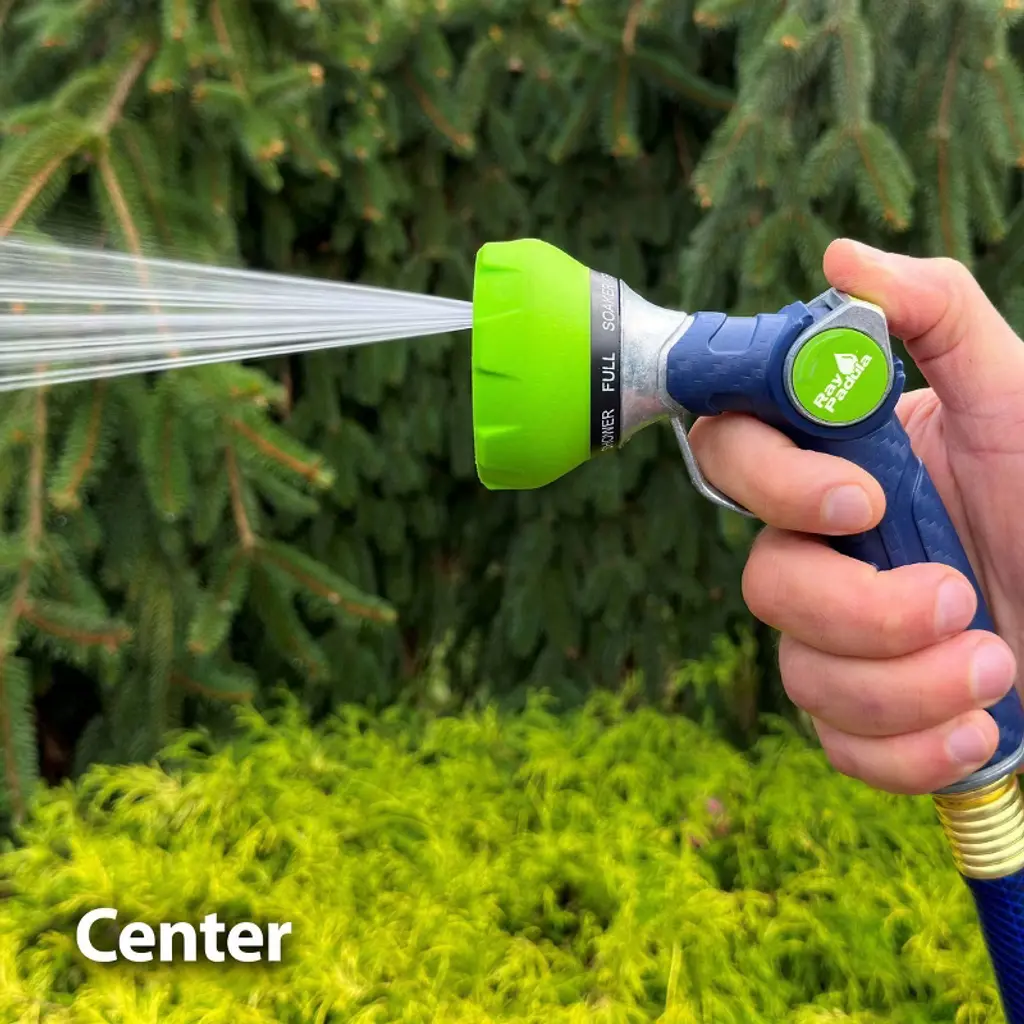 This all new, innovative Ray Padula Thumb Control 8-Pattern hose nozzle is a perfect choice when looking for a high-performing, dependable nozzle season-after-season. By simply rotating the EZGrip pattern dial, you can choose between 8 different watering patterns – one perfect for every task. Best of all, this nozzle features Ray Padula Thumb Control! This unique design allows you to turn your nozzle ON, OFF, and completely adjust water flow with a simple push of your thumb, and without having to walk back and forth to the faucet. With no triggers to squeeze, dials to press, or buttons to click, say goodbye to hand fatigue and strain while watering – a great feature for hands with limited grip strength. You’ll also enjoy the premium all metal construction, and modern Comfi-Grip body design created to reduce hand strain and provide a slip-resistant grip while watering. The unique metal loop even allows for easy storage of your nozzle in the garage or shed while not in use.