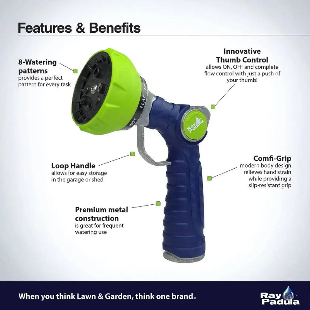 Ray Padula Metal Thumb Control 8-pat Nozzle With Loop: Ezgrip, Leakproof & Weatherproof