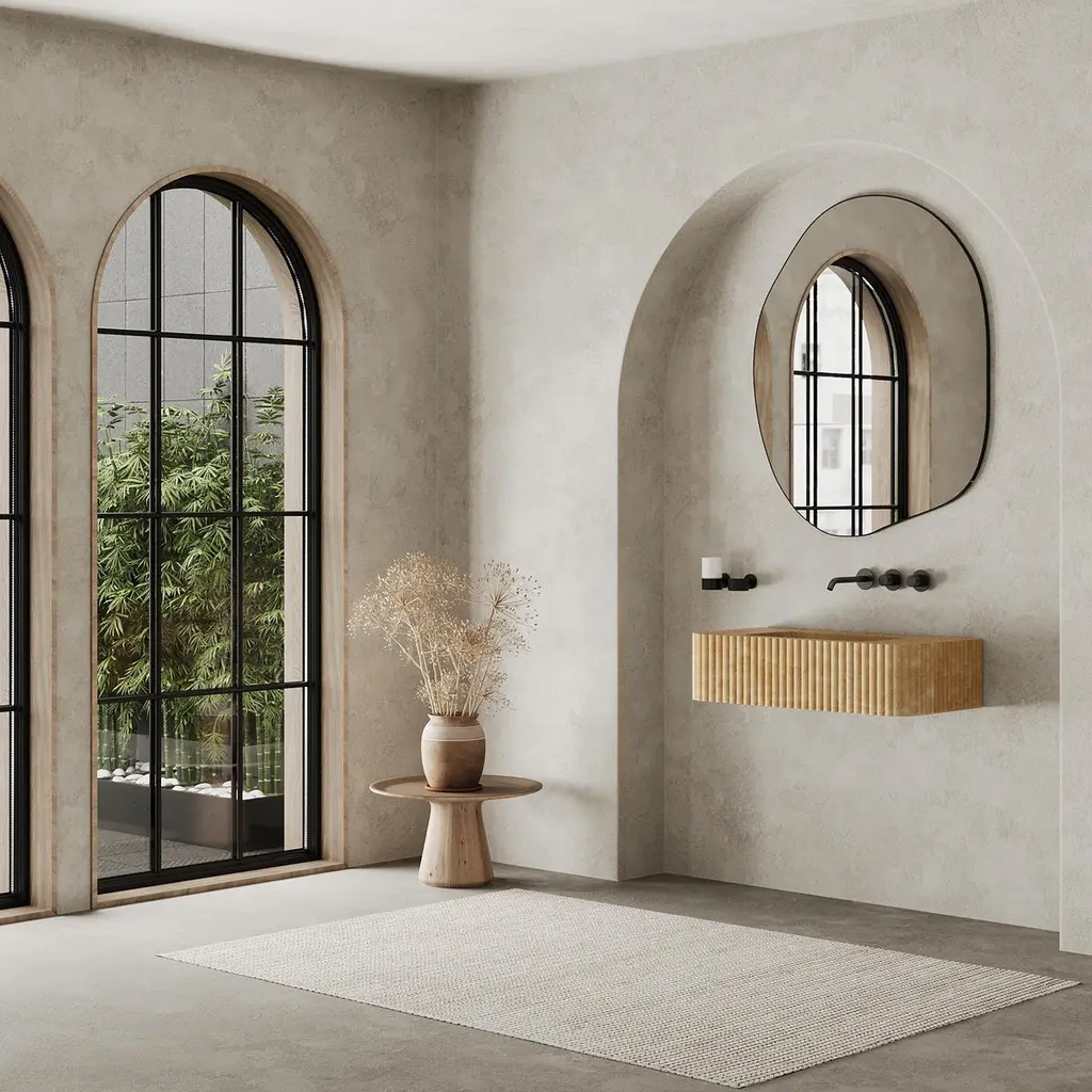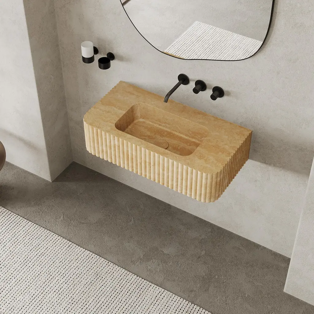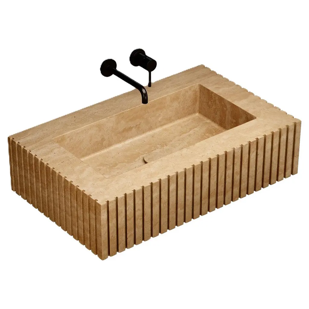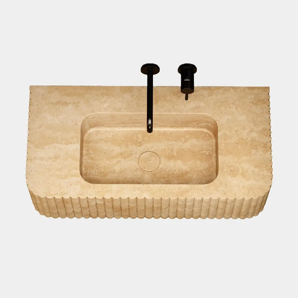 Raya - Ribbed Marble Basin - Beige Travertine - Small