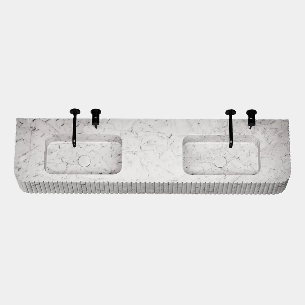Raya - Ribbed Marble - Double Basin - White Carrara
