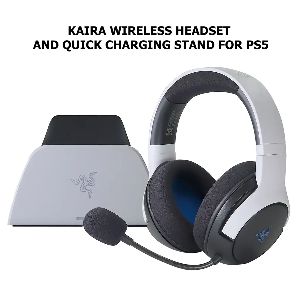 Razer Legendary Duo Bundle For Playstation 5: Kaira Wireless Headset And Quick Charging Stand For Ps5 + Bluetooth Earbuds - White