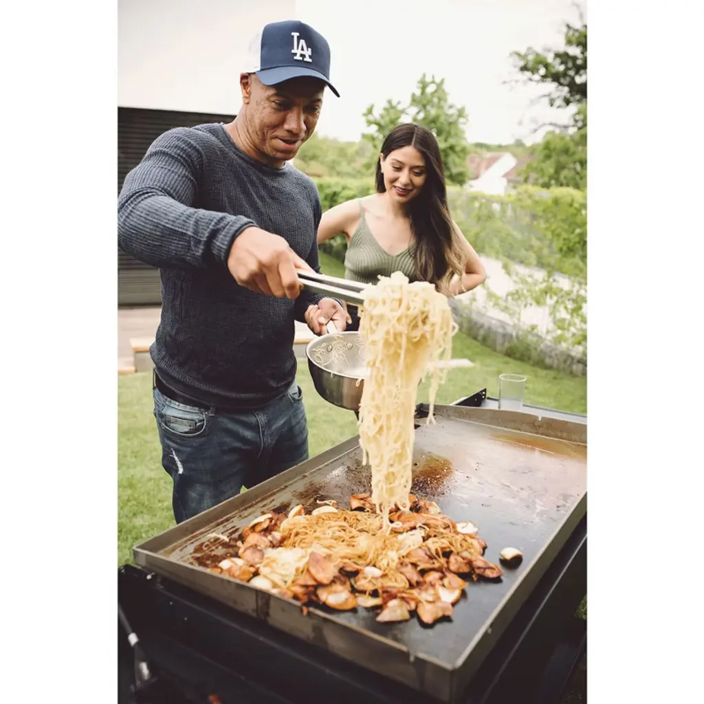 Make BBQ night every night of the summer with the Razor 37-Inch, 4-Burner Gas Griddle. This gas grill features 4 stainless steel burners for a total of 62,000 BTU of power to keep you going. For a simple startup and an easy light, fire up the grill with the push-and-turn ignition. There's plenty of room to grill for everyone at your backyard barbeque or weekend tailgate. With the capacity to cook 57 burgers at a time, no one will go hungry. Whip up some eggs or make a stir fry to show off your skills. With a searing burner, rapidly brown your foods for an extra mouth-watering taste. The 4 wheels make transportation convenient if your grilling expertise is requested elsewhere. The outdoor grill's dual side shelves offer extra space for easy access to both utensils and condiments. This will help you remain hands-free as you grill your meats to perfection. When you decide to call it a night, fold in the shelves that double as a lid to protect your cooking surface. For the food grilling enthusiast, bring your friends and family together to spend days cooking out in the backyard with the 4-Burner Gas Griddle by Razor.