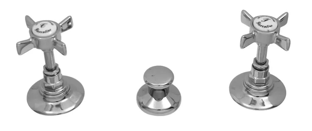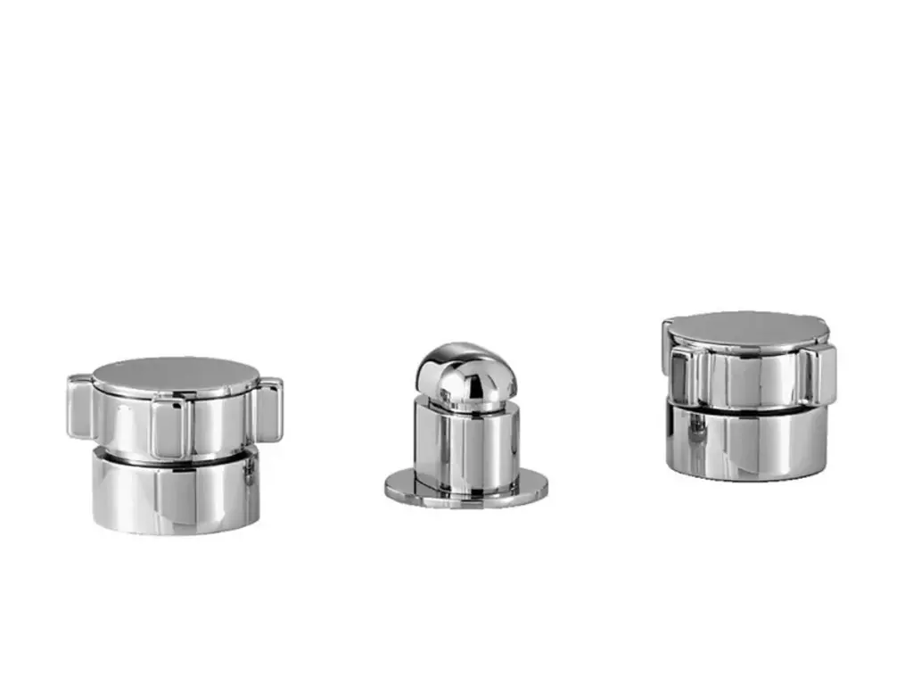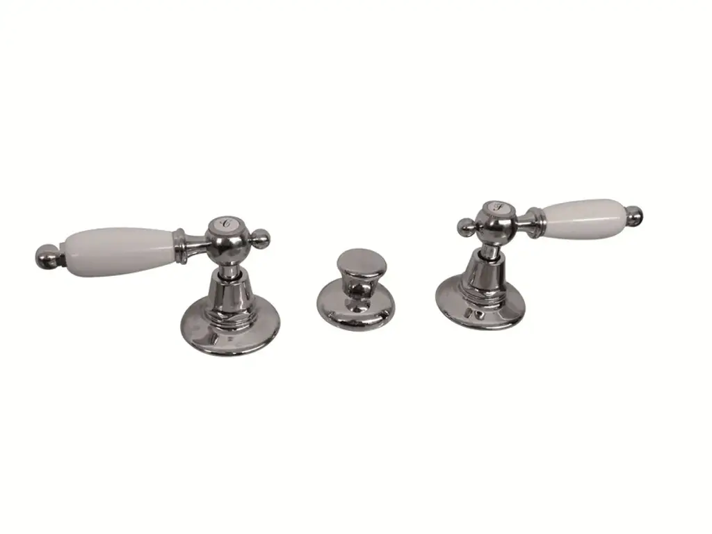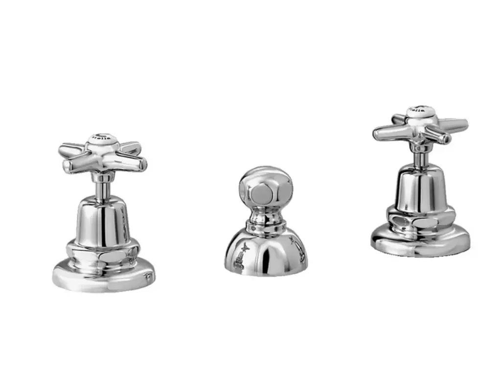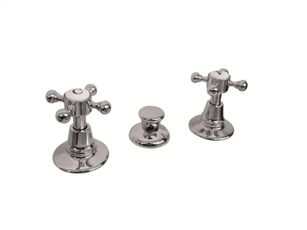 RB106 - Bidet tap 3 holes without spout.The retro style Bleu Provence taps for bidets are made in brass of the highest quality. Large choice of metal finishing (chrome, nickel, copper, gold, bronze,…) matt or glossy. Numerous handles available (ceramic, metal, wood, cracked, crystal, marble).