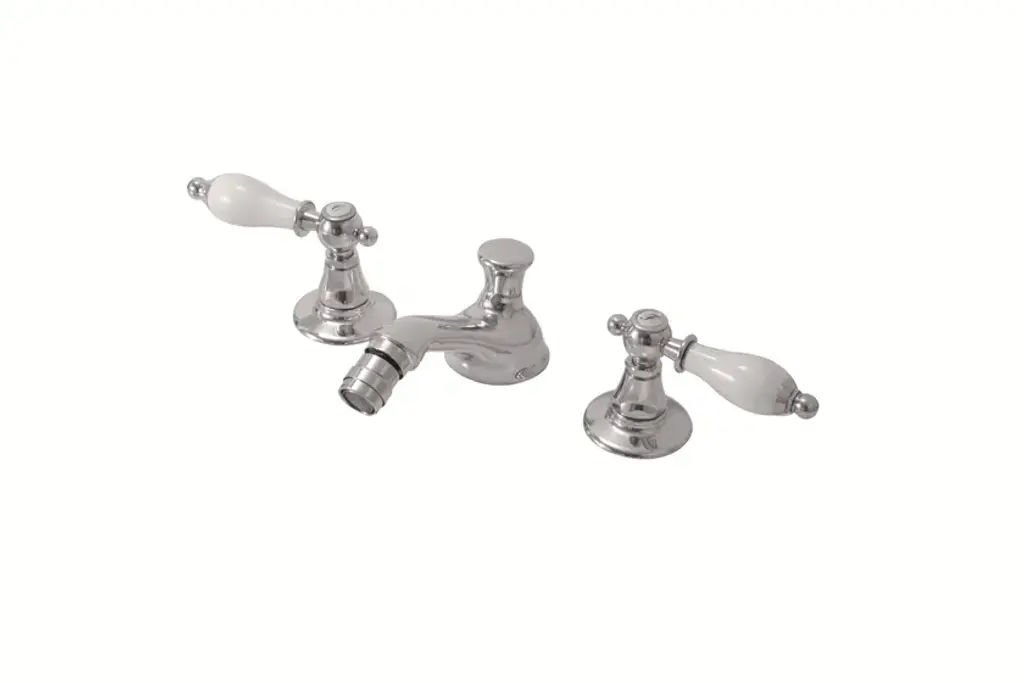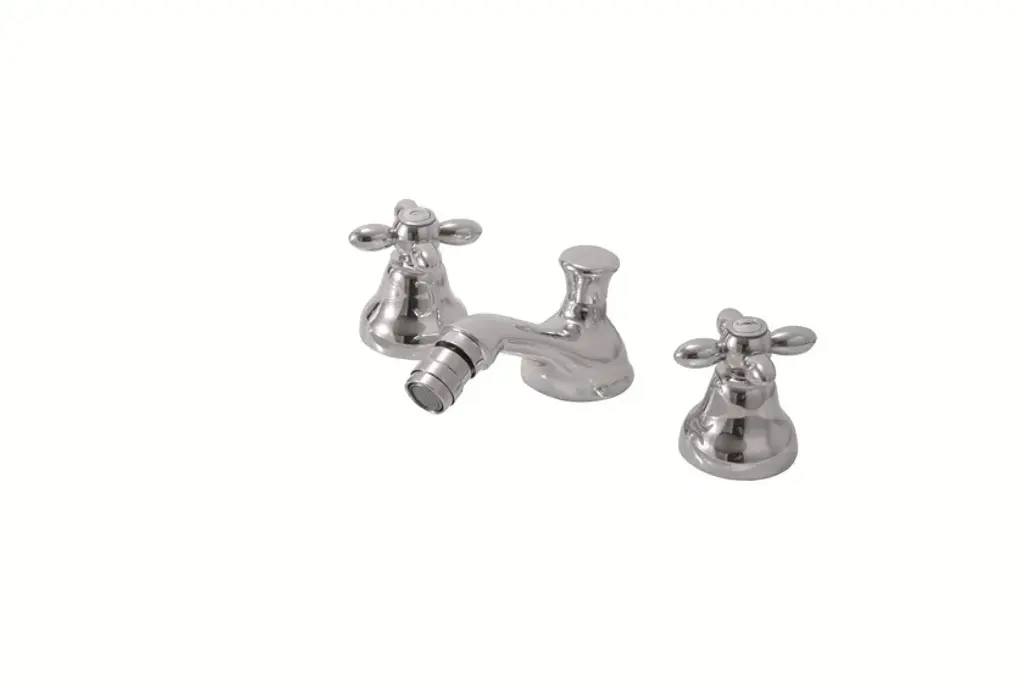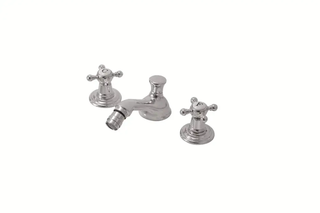 RB107 - 3 holes bidet set.The retro style Bleu Provence taps for bidets are made in brass of the highest quality. Large choice of metal finishing (chrome, nickel, copper, gold, bronze,…) matt or glossy. Numerous handles available (ceramic, metal, wood, cracked, crystal, marble).