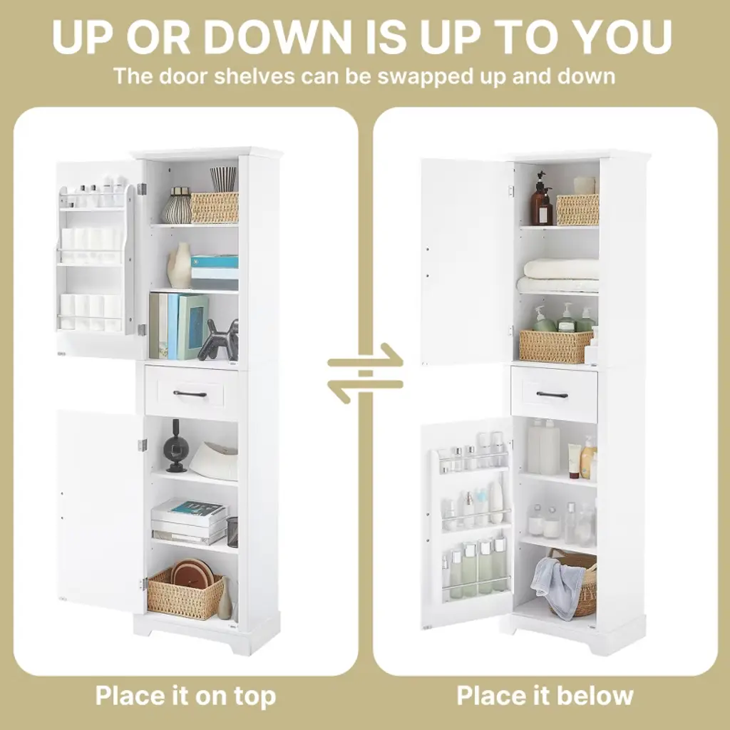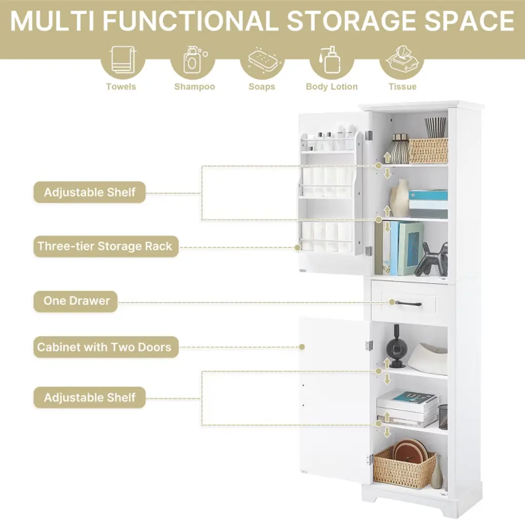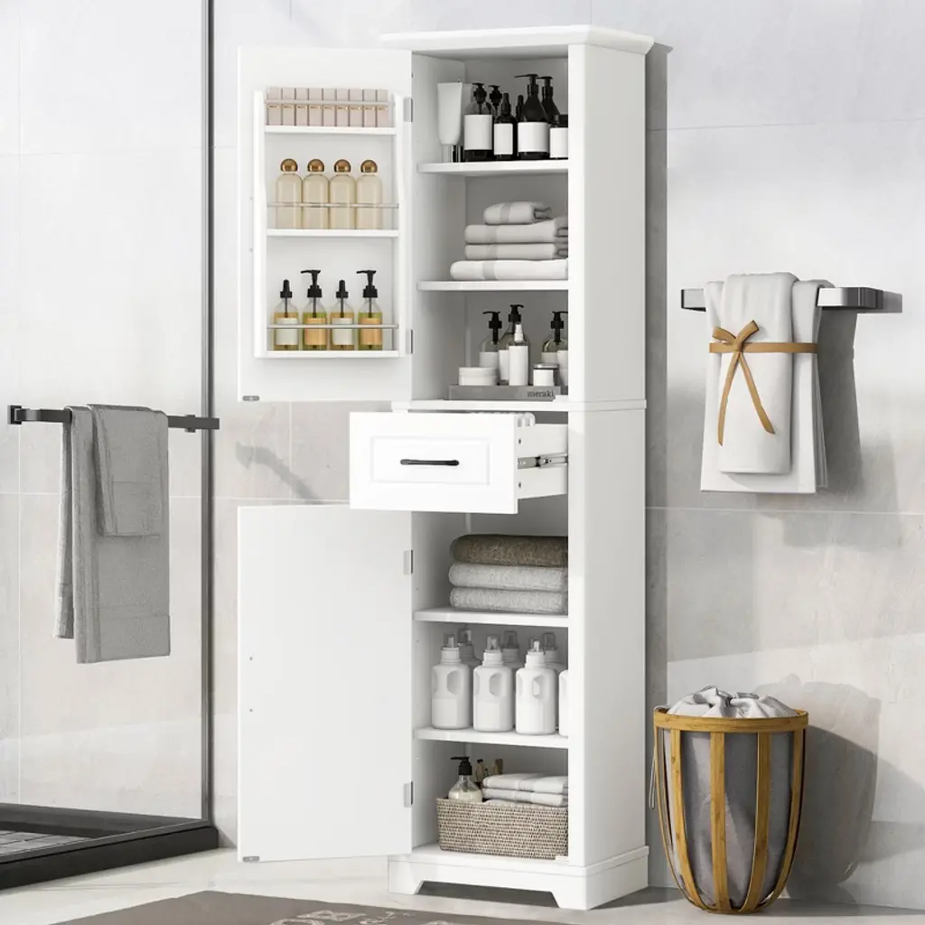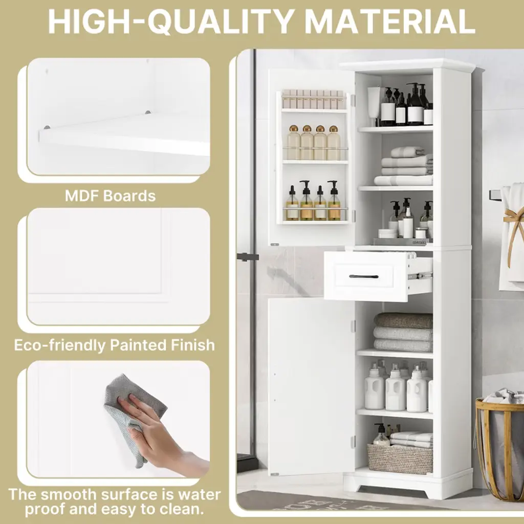 Rbied 20 In. W X 11.8 In. D X 72.5 In. H White Mdf Freestanding Bathroom Storage Cabinet Linen Cabinet With Adjustable Shelves