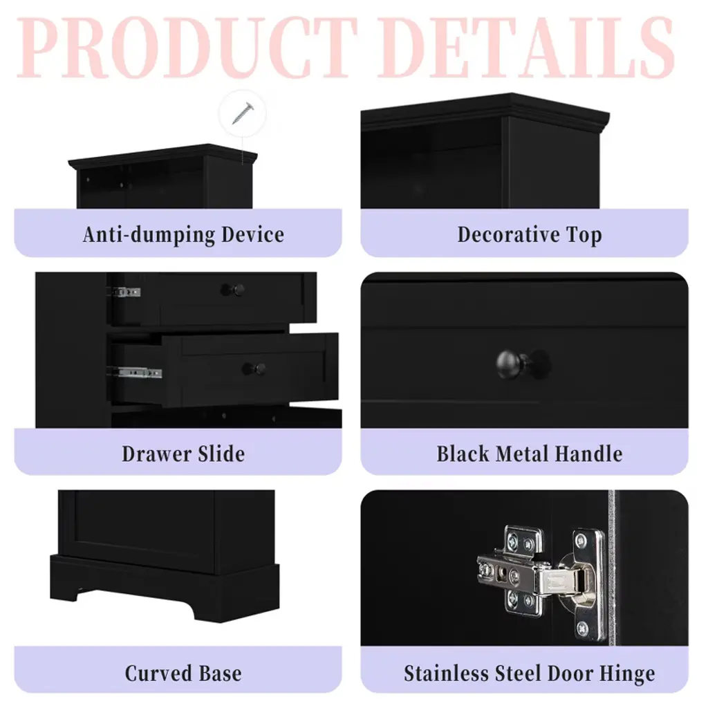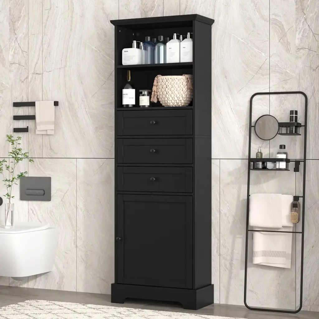 Rbied 22 In. W X 10 In. D X 67 In. H Black Bathroom Storage Cabinet Linen Cabinet With Drawers And Adjustable Shelves