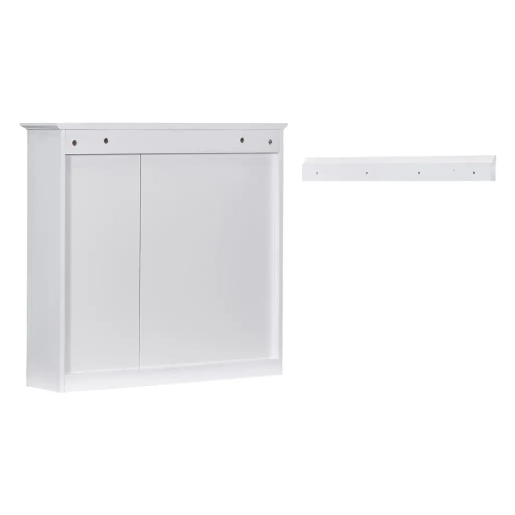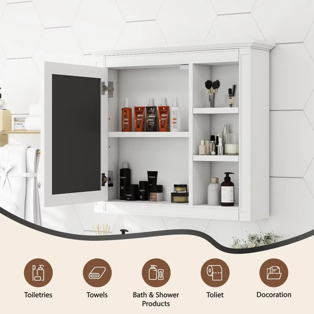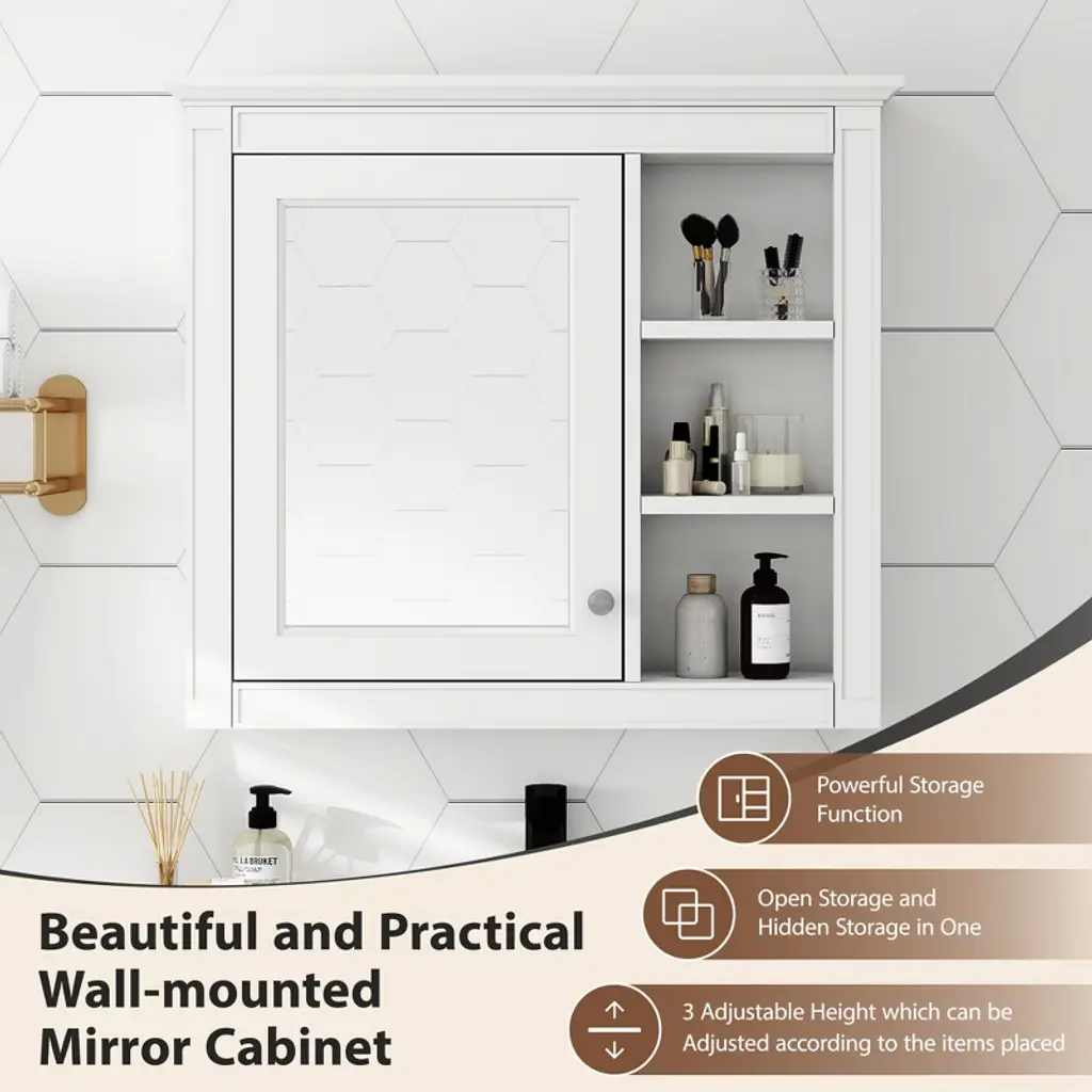 This freestanding bathroom mirror cabinet perfectly blends aesthetics and functionality. Its unique textured design creates a luxurious visual effect under lighting, instantly elevating the bathroom's style. Hidden storage compartments are located behind the mirrored doors, while a central, dedicated space provides privacy and keeps dust away. The wall-mounted design saves space and eliminates the need for an additional mirror, allowing the cabinet to serve two purposes: a neat storage cabinet and a high-definition makeup mirror. Constructed from high-quality materials, the cabinet boasts a durable construction, balancing practicality with aesthetics. Installation is quick and easy, with all parts pre-punched and clearly marked for quick assembly with hardware tools, providing an efficient and worry-free bathroom organization experience.