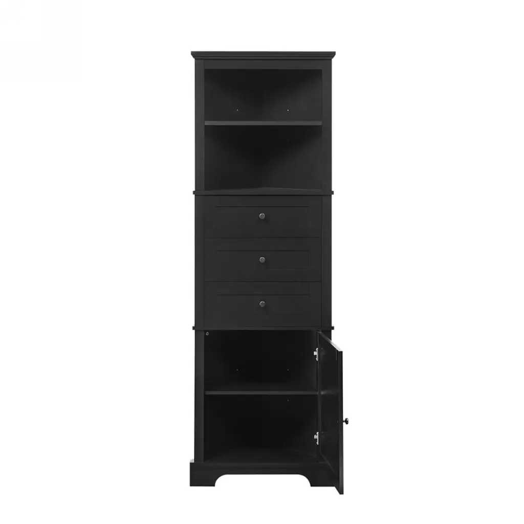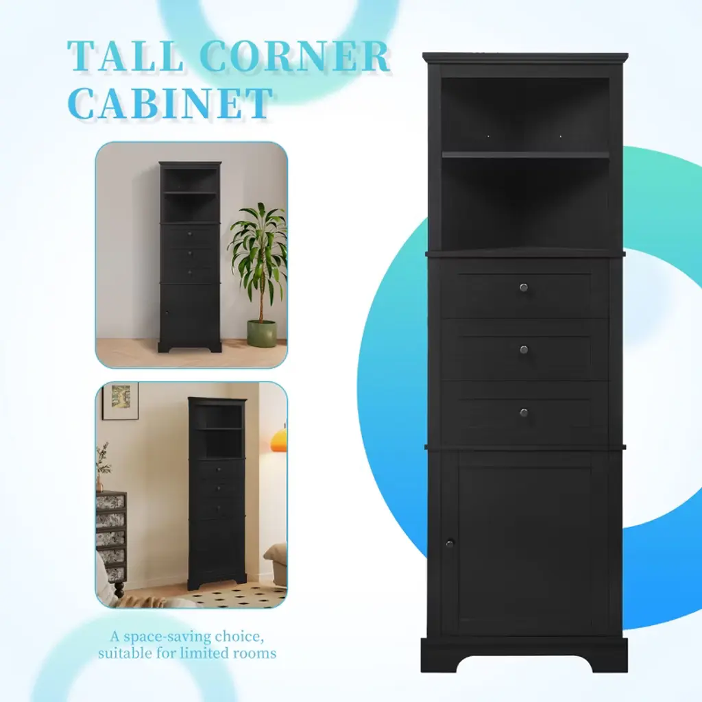 Rbied 68.9 In. H Mdf Freestanding Black Linen Cabinet Bathroom Triangle Tall Cabinet With Adjustable Shelves, 3 Drawers