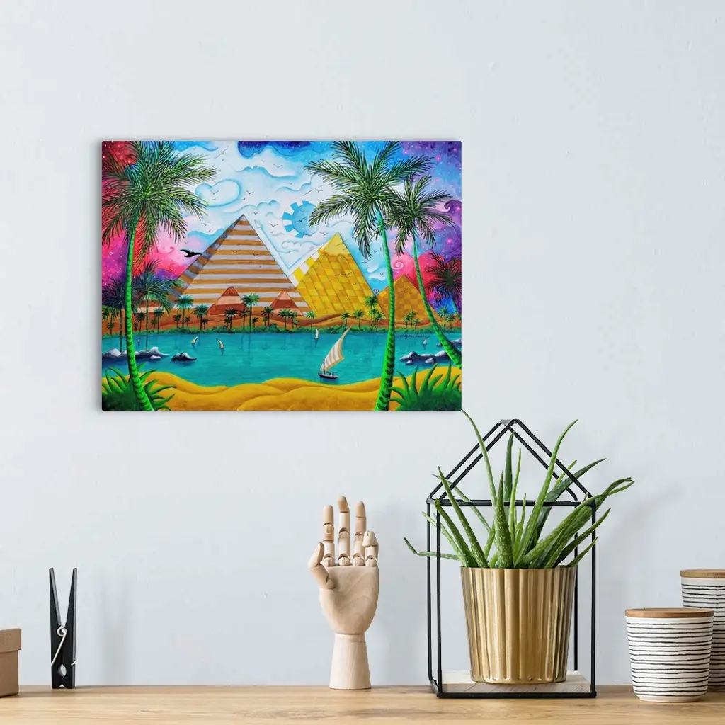 Reaching For The Stars - Nile Pyramids Of Giza wall art for home and office decor. Discover canvas art prints, photos, mural, big canvas art and framed wall art in GreatBigCanvas.com's varied collections.