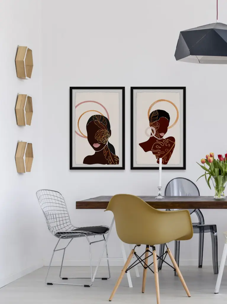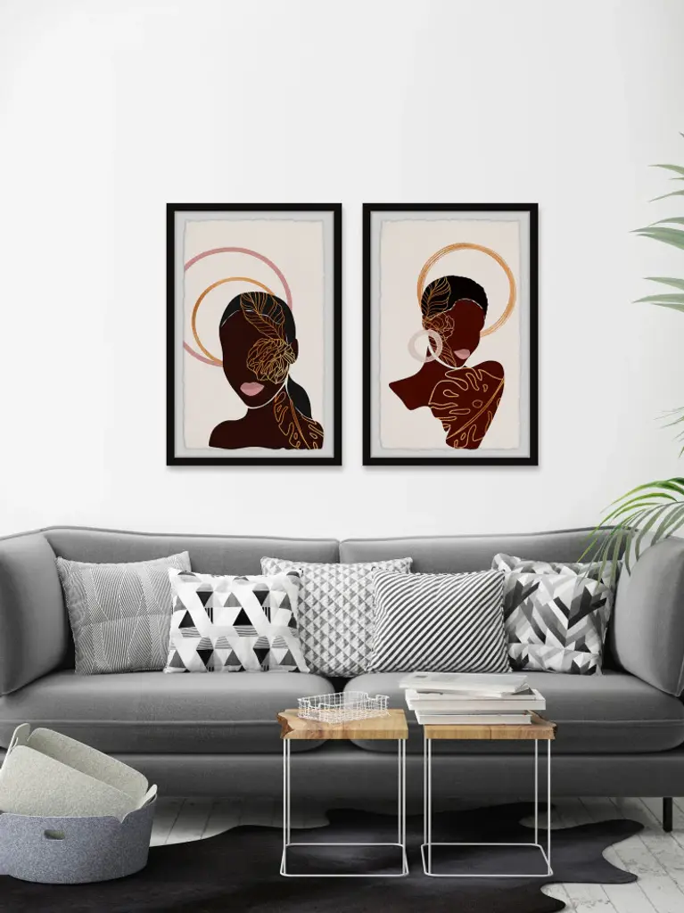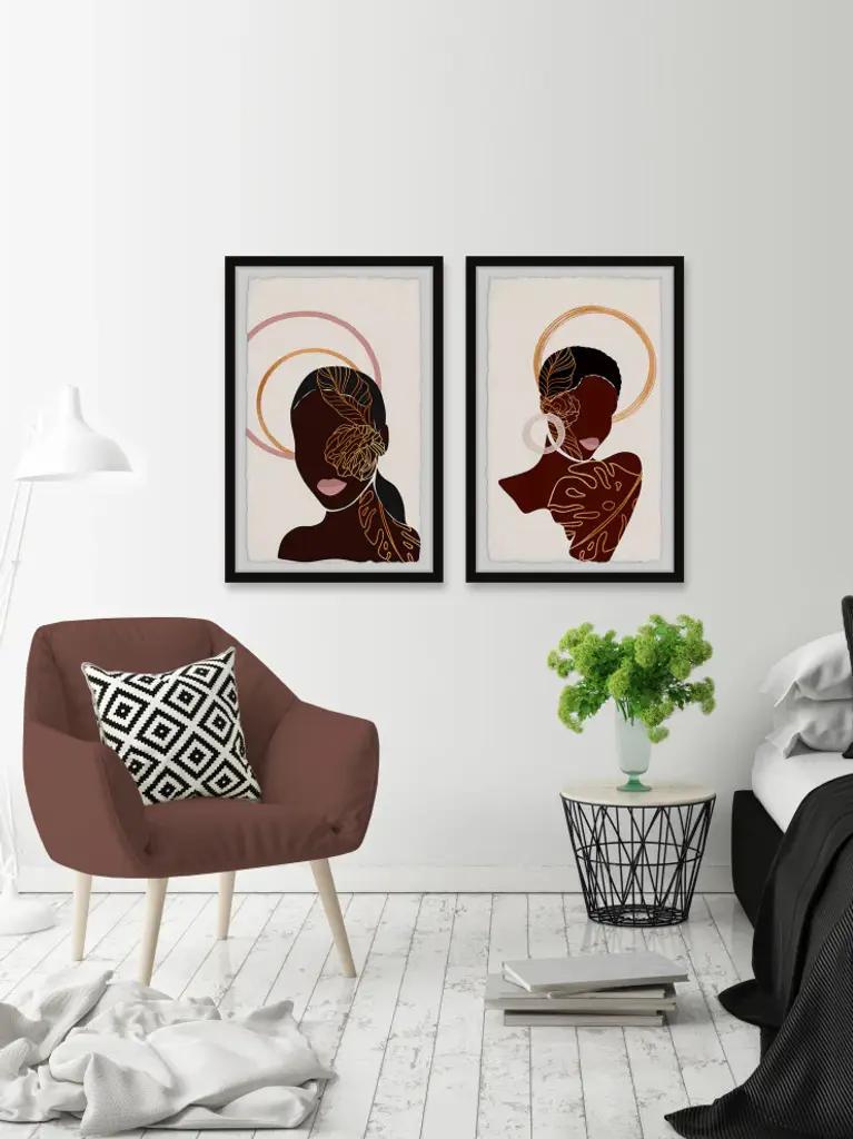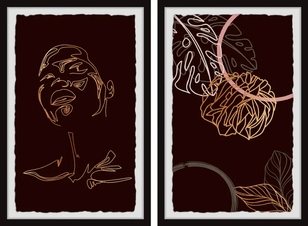 Create a curated gallery with these two drawing prints that each feature a stunning silhouette with various rings and leaves overlapping one another. Proudly printed in the USA, this piece is printed on high quality archive paper and professionally hand-framed. With wall-mounting hooks included, this artful accent is ready to hang up as soon as it reaches your front door.- (2) panels of 8x12- Top quality Giclee print on high resolution Archive Paper- Hand cut deckled edges- High quality durable non-warping frame- Finished under shatter resistant plexiglass- Arrives ready to hang- Includes a certificate of authenticity- Printed in the USA