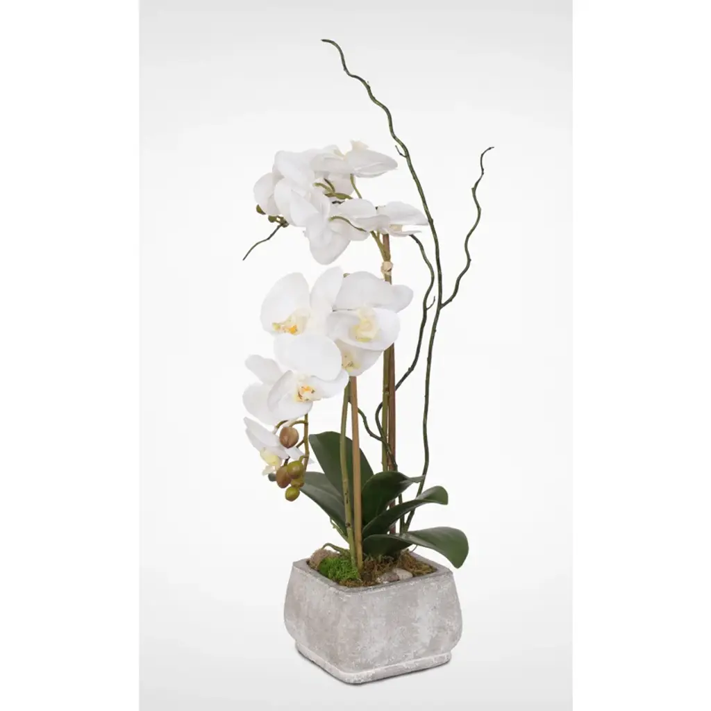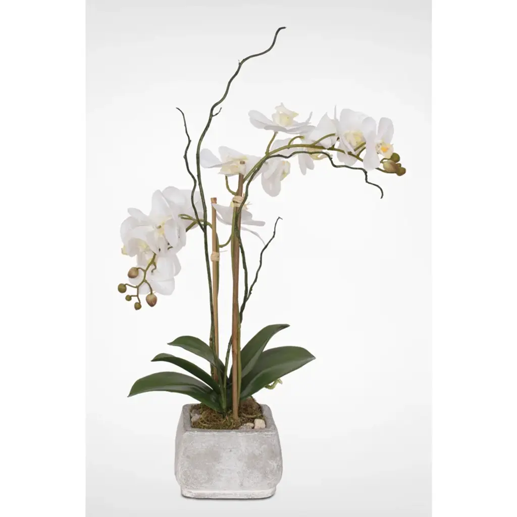 Real Touch Cream White Phalaenopsis Orchids In A Stone Wash Pot