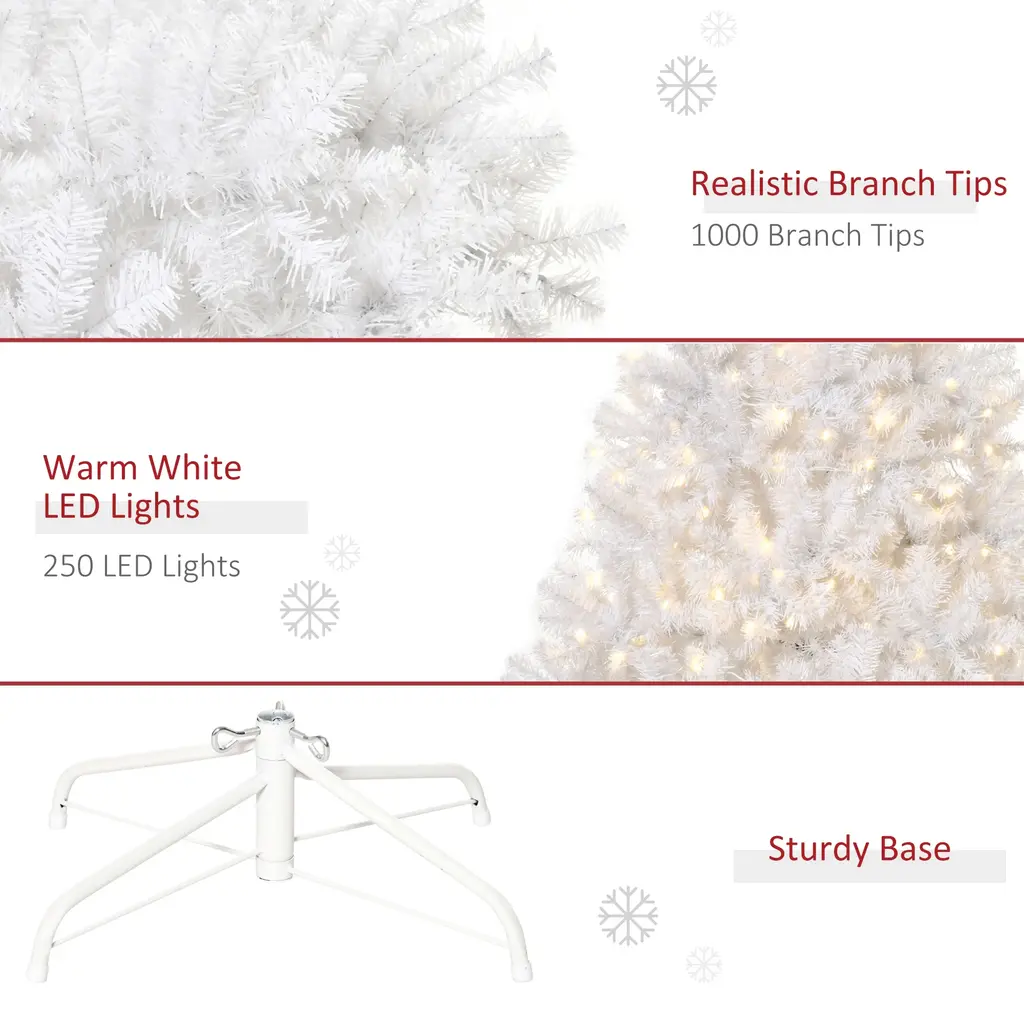 Realistic 6Ft Tall Christmas Tree With 250 Warm White Led Lights And 1000 Tips - 6 Foot - White