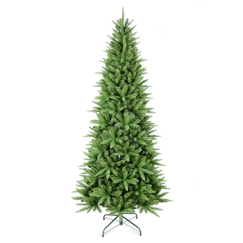Extremely realistic: This true-to-life tree contains individual branches and needles. The craftsmanship and detail to design make this spruce the most realistic artificial Christmas tree in its class. Its full lush shape and unique dark hue are a perfect backdrop for your holiday decorations.Premium quality: Designed and constructed using the newest manufacturing technology and highest-quality materials, our holiday trees create the illusion of genuine, fresh-cut, green spruce trees. Faux (fake) Christmas trees are the best value, as they are affordable and will last for holiday seasons to come.Built to last: Constructed with premium grade materials, the branches and needles are both flame retardant and non-allergenic. Features hundreds of individually crafted, pre-attached, hinged branch tips with durable metal hinges.Includes sturdy metal stand: This tall Christmas tree stands straight on its foldable metal base. Integrated rubber feet help keep the tree in place and your floors scratch-free.Easy assembly and takedown: Put your tree together in three easy steps by simply stacking each pre-labeled section to the foldable base and then arranging the hinged branches. For its most lush and full form, please set aside 30-60 minutes to properly shape the tree depending on size. Simply pull down and arrange the branches to your preference, with the included protective gloves. If you are looking for a touch of luxury this Christmas, this is the tree you’ve been looking for! Its unique dark color will make your holiday decorations pop and sparkle. A perfect addition to your home or office for Christmas and other festive events. This true-to-life trees' craftsmanship and detailed design make this the most realistic artificial Christmas tree in its class. Built using the newest manufacturing technology and highest-quality materials, our holiday trees create the illusion of genuine, fresh-cut, green spruce trees. Faux (fake) Christmas trees are the best value, as they are affordable and will last for holidays to come. The branches and needles are both flame retardant and non-allergenic. This tall Christmas tree stands straight on its foldable metal base. Integrated rubber feet help keep the tree in place and your floors scratch-free. Set up in 3 easy steps; place the base, stack each pre-labeled section, and properly shape the tree using the included protective gloves. Specifcations: 4.5FT - 4.5' High x 33.5" Diameter, Hinged Branches: 400, Stand: 5.5" High x 16" Diameter 6FT - 6' High x 42" Diameter, Hinged Branches: 798, Stand: 6" High x 20" Diameter 7.5FT - 7.5' High x 54" Diameter, Hinged Branches: 1346, Stand: 6" High x 20" Diameter 9FT - 9' High x 60" Diameter, Hinged Branches: 2028, Stand: 6" High x 20" Diameter