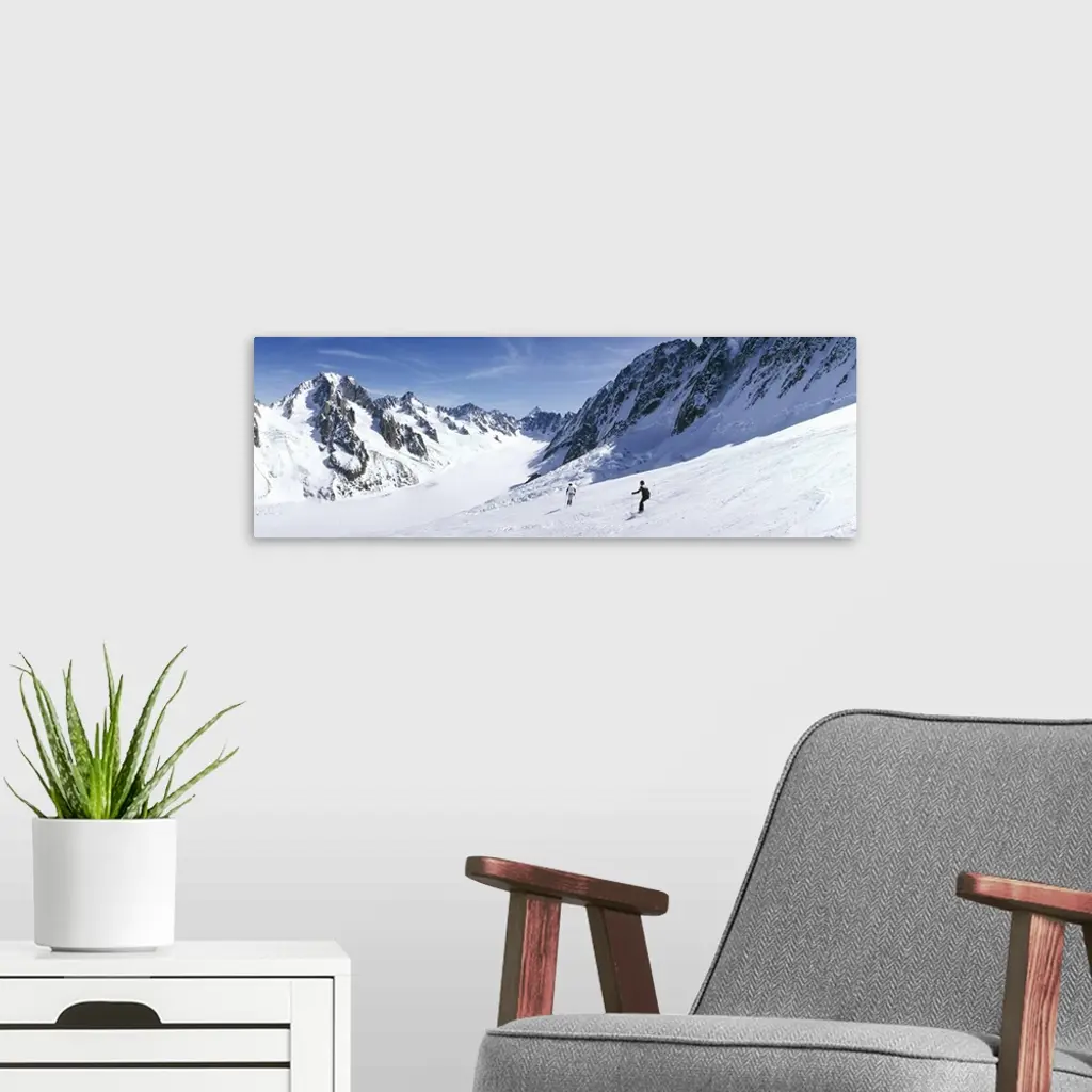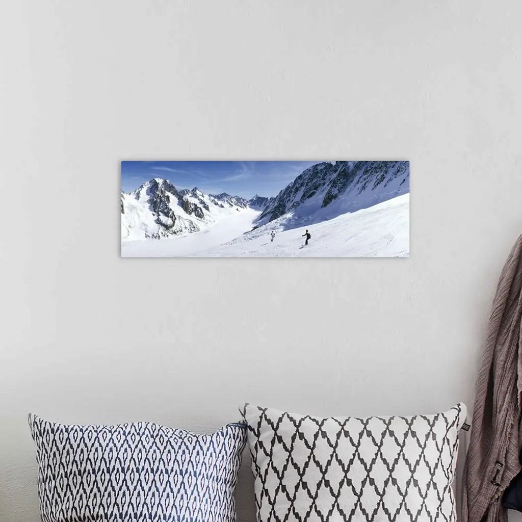 Rear view of two people skiing, Les Grands Montets, Chamonix, France wall art for home and office decor. Discover canvas art prints, photos, mural, big canvas art and framed wall art in GreatBigCanvas.com's varied collections.