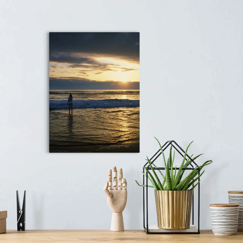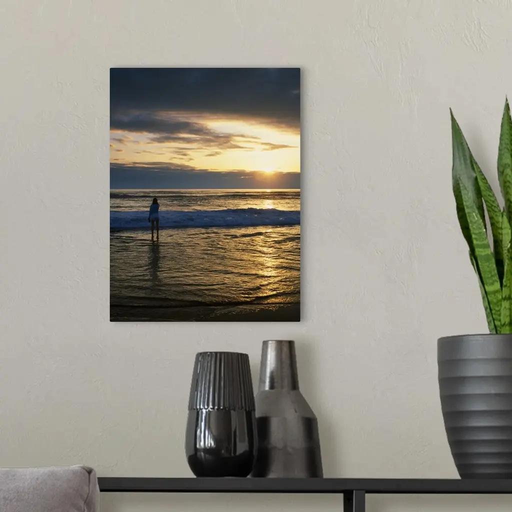 Rear View Of Woman On Beach Looking Toward Horizon wall art for home and office decor. Discover canvas art prints, photos, mural, big canvas art and framed wall art in GreatBigCanvas.com's varied collections.