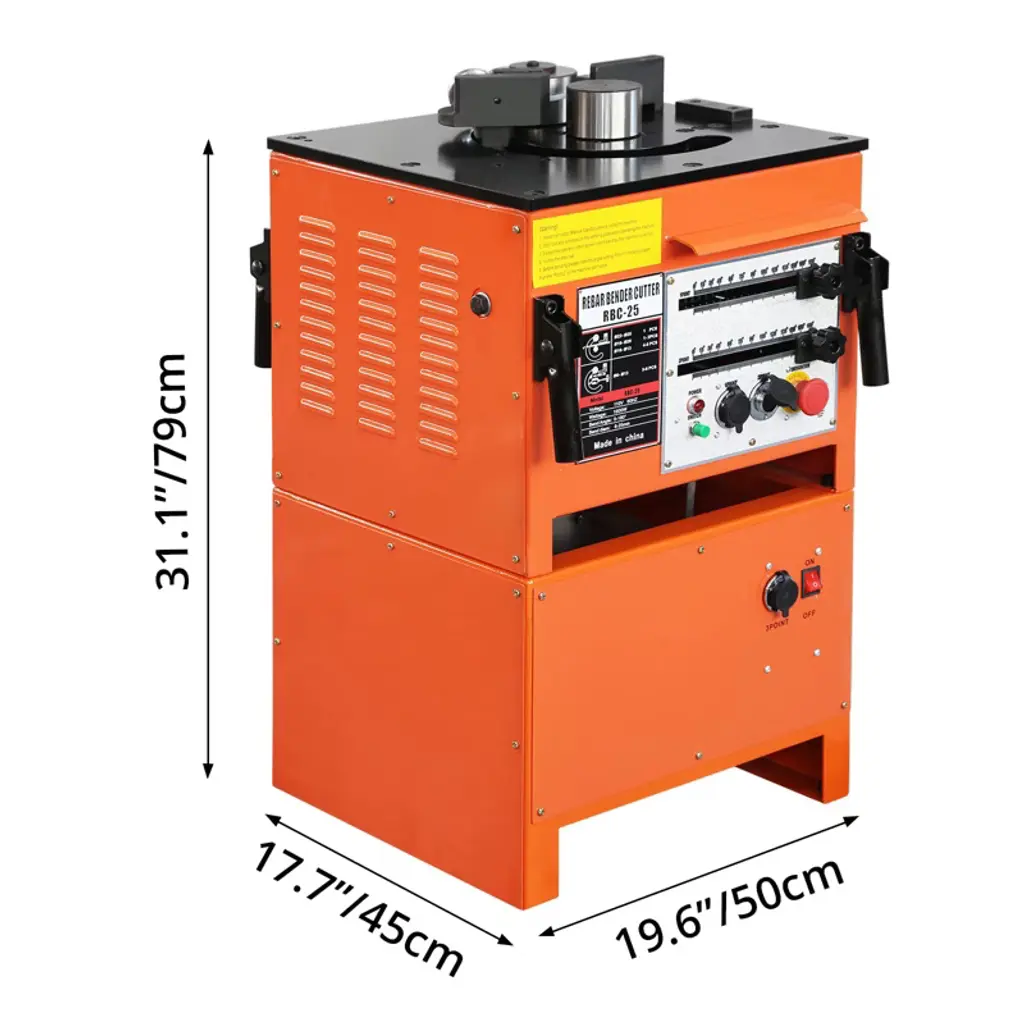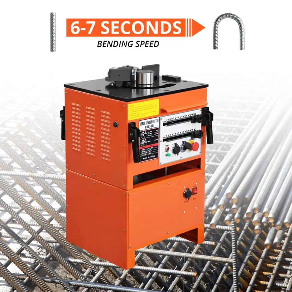 1.1600W Pure Copper Coil Motor for Quiet, Long-Lasting Performance Equipped with a high-powered 1600W pure copper coil motor, this rebar bender & cutter delivers reliable strength while operating quietly (92 dB(A))¡ªminimizing noise disruption on construction sites. The pure copper motor reduces unnecessary wear and tear compared to standard motors, significantly extending the machine¡¯s lifespan, even with daily heavy use. It runs on 110V voltage (60 Hz frequency, 14A current), providing consistent power to handle tough steel bars without stalling. This motor design balances efficiency and durability, making it ideal for long construction shifts where reliability and low maintenance are critical. 2.Lightning-Fast 5¨C7s Bending/Cutting Speed for High Efficiency This 2-in-1 machine boasts exceptional speed to boost workflow: it bends rebar (ranging from 1/4'' #2 to 1'' #8 Grade 60, or 6¨C25 mm diameter) in just 6¨C7 seconds and cuts rebar in 5¨C6 seconds¡ªfar faster than manual tools or lower-powered machines. It supports bending at any angle between 0¨C180¡ã with a 1.57'' (40 mm) bending radius, and handles rebar up to HRC30 hardness (suitable for high-strength carbon steel or screw thread steel). For optimal hydraulic performance, it uses VG46 hydraulic oil¡ªensuring smooth, consistent movement of internal components. This speed and versatility cut down on project timelines, ideal for busy construction teams. 3.Dual Slide-Type Angle Selectors for Precise, Repeatable Bends Designed for accuracy, the machine features two slide-type angle selectors that simplify adjusting bends from 0¨C180¡ã. Preset angle locks ensure every bend is consistent¡ªcritical for projects requiring uniform steel bar angles (e.g., foundation frames or concrete reinforcement). A key operational tip: the angle set at ¡°Point 1¡± must be greater than ¡°Point 2¡± to ensure smooth, jolt-free bending and prevent damage to the rebar or machine. This intuitive design eliminates guesswork, even for less experienced operators, reducing errors and material waste. 4.Heavy-Duty Iron Construction for Durability & Strong Clamping Built to withstand construction site rigor, the machine has a sturdy iron body that resists dents and impacts. Its critical components¡ªincluding a ?78 mm iron gyre idler wheel and a ?94 mm fixed idler wheel¡ªare engineered for strength, ensuring they won¡¯t break or deform even when handling super-hard rebar. The machine¡¯s strong clamping force securely holds steel bars in place during bending/cutting, preventing slippage that could cause uneven results or waste. This durable build means the machine can handle daily use with minimal wear, reducing replacement costs over time. 5.Foot Pedal Control & Portable Handles for Ease of Use User-friendly features make this machine practical for on-site use: a standard foot pedal control switch enables hands-free operation¡ªkeeping both hands free to position rebar accurately, improving safety and precision. Four built-in handles (one on each corner) allow easy lifting and transport, even when moving the machine between different areas of a construction site. It¡¯s widely versatile, suitable for bending or cutting rebar, steel bars, steel rods, screw thread steel, carbon steel, and round steel¡ªmaking it an essential tool for construction engineering, concrete work, and infrastructure projects.