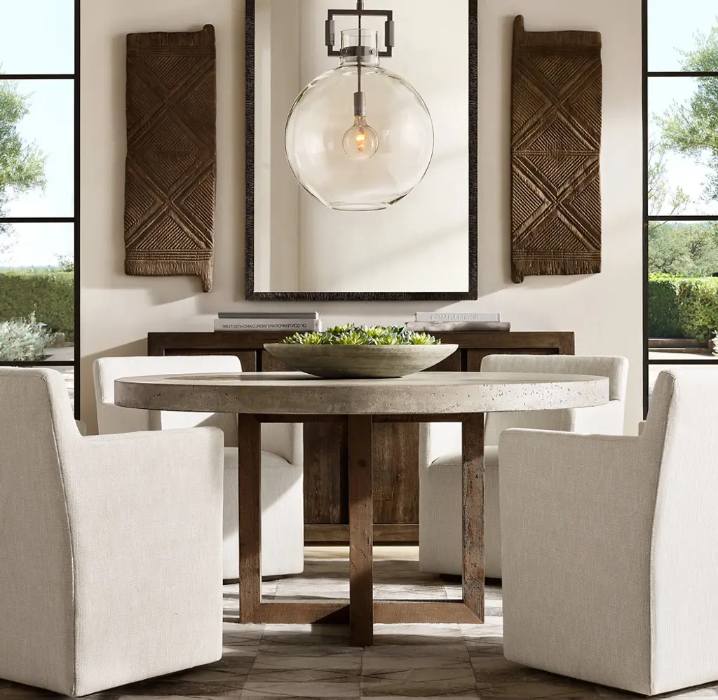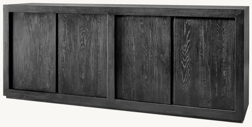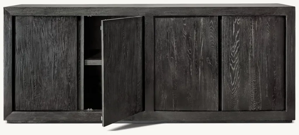 Reclaimed oak timbers from decades-old buildings, with distressed white oak planks for consistency and stability, lend richness to this simple, linear collection from artisan Theo Eichholtz. Each piece is handcrafted of wood that retains its natural character, bearing the occasional knot, nick or crack where no two sideboards are exactly the same. SHOP THE ENTIRE COLLECTION