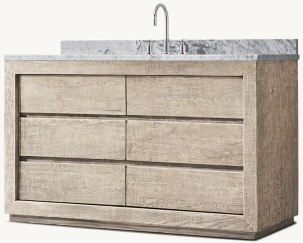Reclaimed oak timbers from decades-old buildings in Europe lend richness to this simple, linear collection from artisan Nils Verhoeven. Each piece is handcrafted of wood that retains its natural character, bearing the occasional knot, nick or crack. No two vanities are exactly the same.SHOP THE ENTIRE COLLECTION
