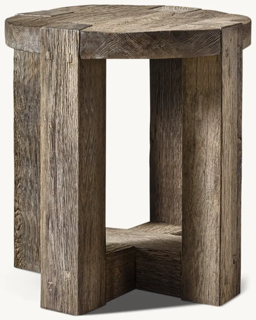 Celebrating the organic beauty of salvaged wood, our table by Theo Eichholtz is handcrafted of solid oak timbers reclaimed from decades-old buildings. The rough-hewn planks rest atop substantial supports, the design allowing the rustic character of the wood to take center stage. Each one-of-a-kind table displays the nicks, knots and imperfections that speak to the wood's former life.SHOP THE ENTIRE COLLECTION