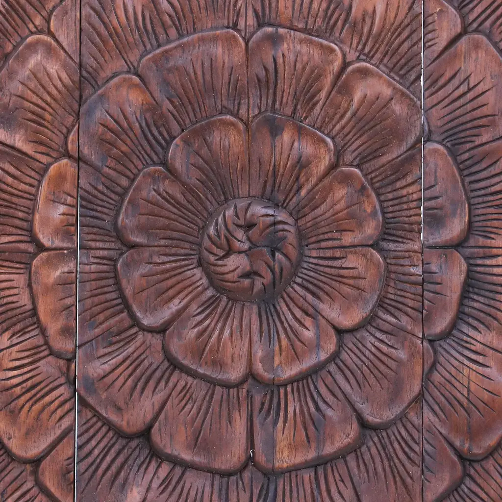 Reclaimed Teak Wood Lotus-Motif Relief Panel (Set Of 5)- Classic Lotus