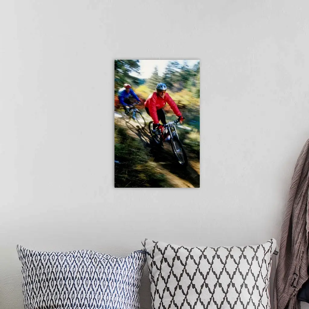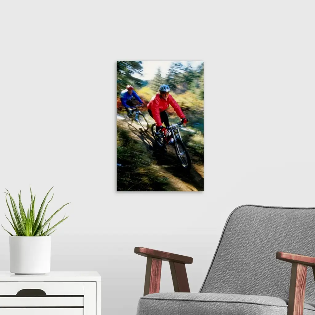 Recreational mountain biker riding on the trails wall art for home and office decor. Discover canvas art prints, photos, mural, big canvas art and framed wall art in GreatBigCanvas.com's varied collections.