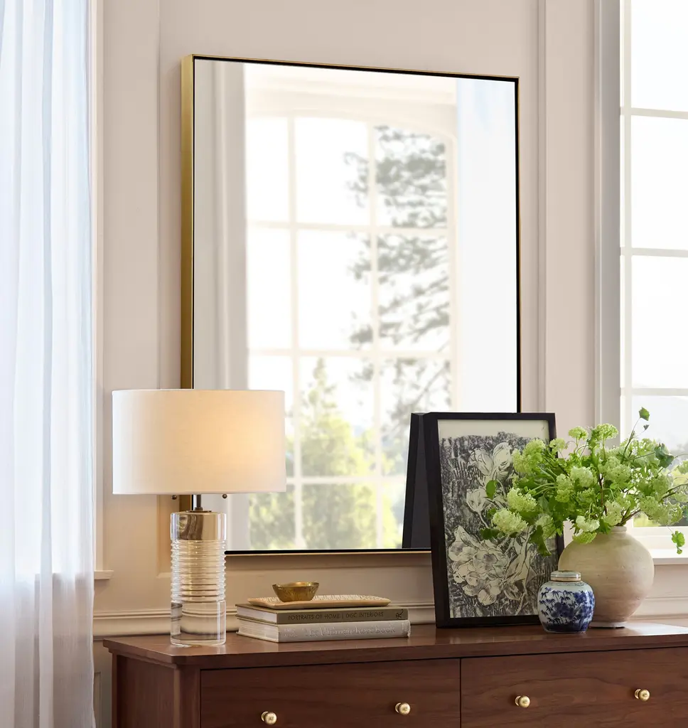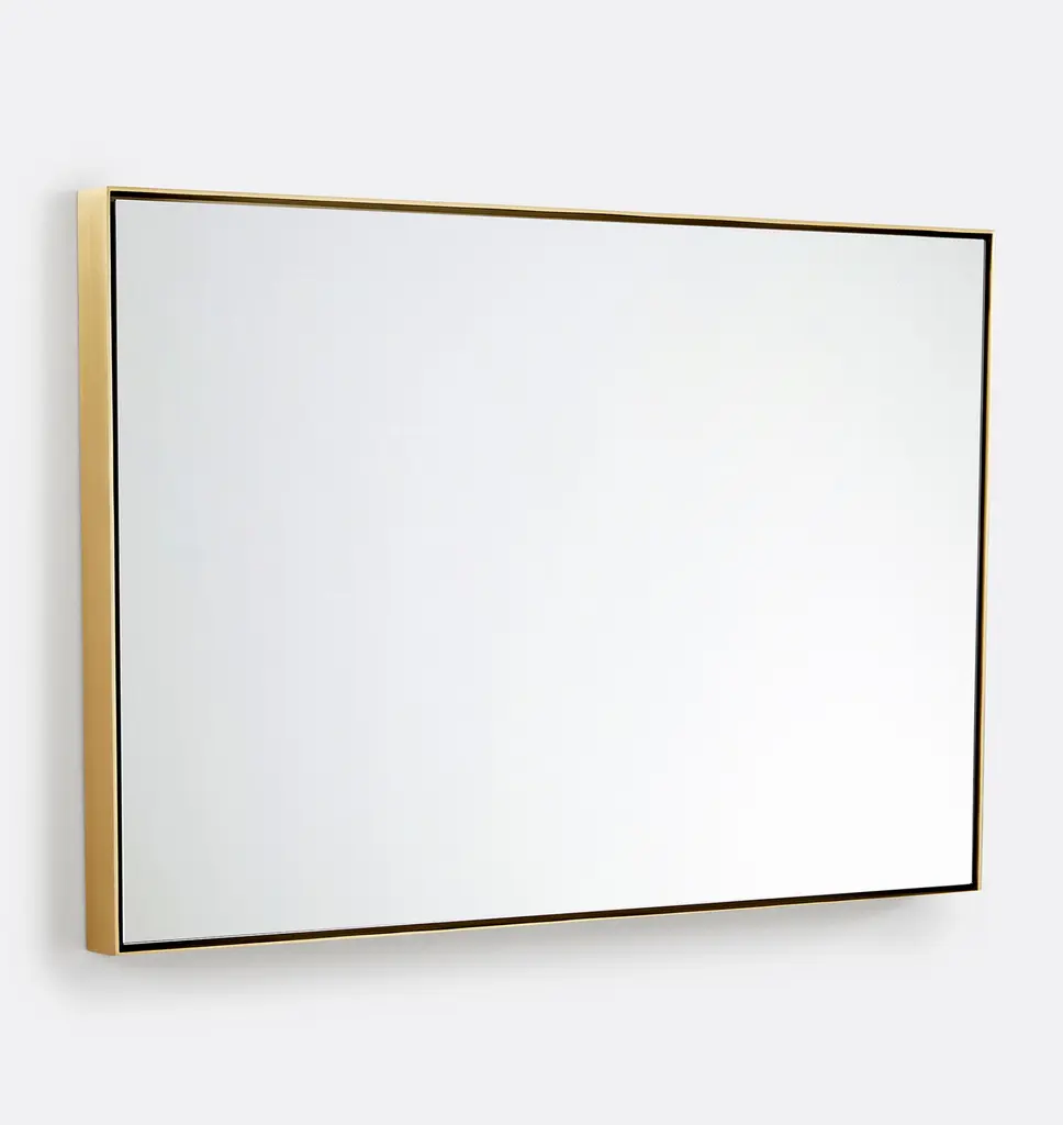 Our Rectangle Floating Metal Framed Mirror features a sleek metal frame made from solid brass. A modern floating effect between the mirror and frame adds depth and visual interest - the perfect elevated finishing touch to your bathroom vanity, bedroom, or entryway. Available in two sizes and a range of finishes to suit your space.