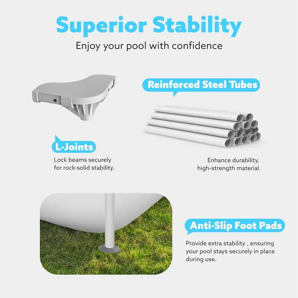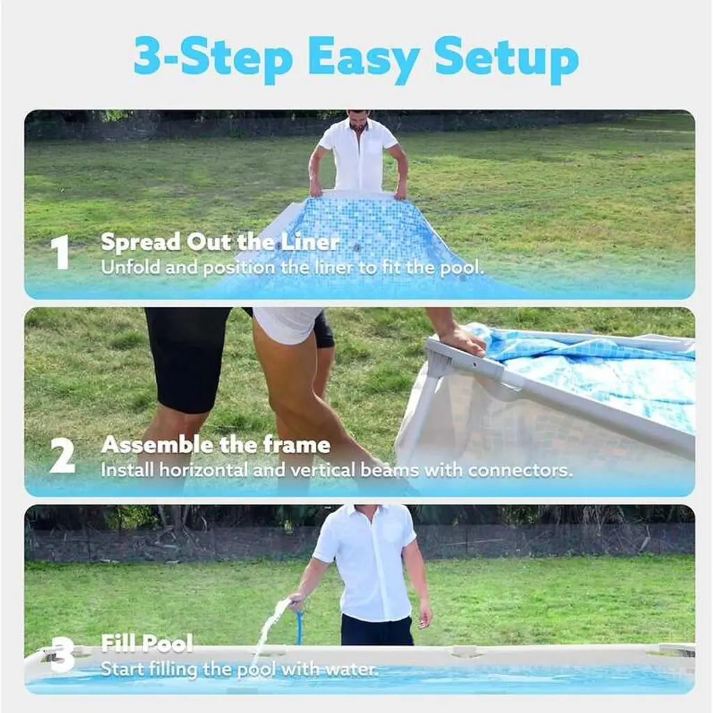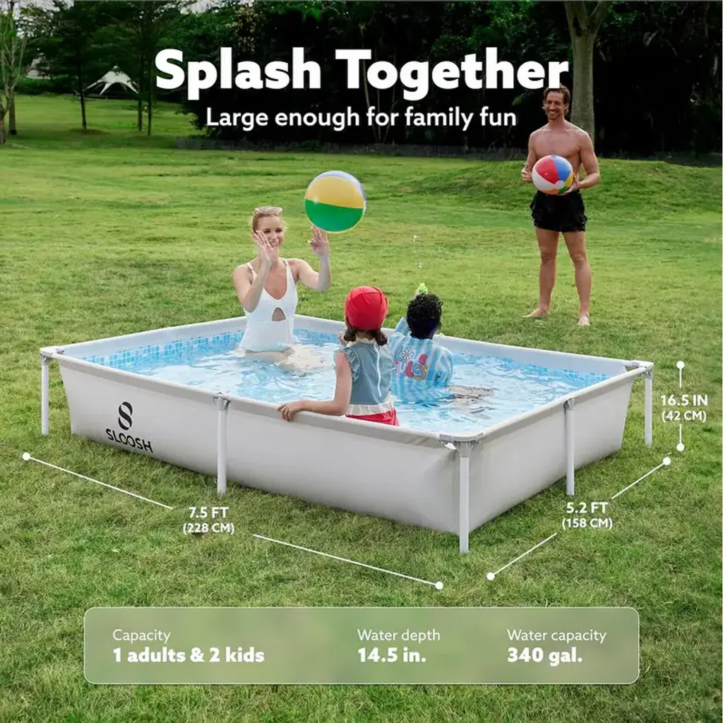 Sloosh introduces a stylish rectangular pool, perfect for modern backyards. This above ground pool offers ample space for family fun. The sturdy frame pool set ensures durability, while the included pool with filter keeps the water crystal clear. Designed as a family swimming pool, it's great for both kids and adults. Whether you need an outdoor pool for kids or a relaxing summer pool, this backyard pool combines functionality and style for endless enjoyment.