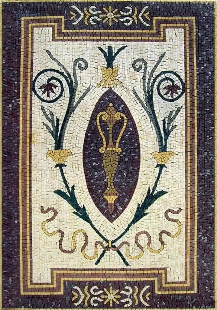 Introducing the Rectangular Stone Mosaic - Senia, the perfect way to elevate the aesthetic of your home with timeless elegance. This exquisite mosaic tile is designed to transform any space, whether it be a chic backsplash in your kitchen or a stunning focal point in your bathroom. Each piece of the Senia rectangular stone mosaic features a beautifully crafted garden urn motif, meticulously hand cut to ensure a unique, custom look that adds character and sophistication to your interiors. The natural stone material not only enhances the beauty of your spaces but also offers durability and longevity, making it a wise investment for your home.With its versatile design, the Senia mosaic can blend seamlessly with various decor styles, from contemporary to traditional. Its rectangular shape allows for endless design possibilities, whether you're aiming for a sleek, modern appearance or a more classic, vintage feel. The intricate details of the garden urn motif bring a touch of artistry and charm that is sure to impress.Not only does this mosaic tile beautify your space, but it also increases the overall value of your home, making it an ideal choice for renovations or new constructions. Easy to clean and maintain, the Senia mosaic is practical as well as stylish, allowing you to enjoy its breathtaking aesthetics without the hassle.Transform your living areas with the Rectangular Stone Mosaic - Senia. Embrace the luxurious feel and stunning visuals that this hand-crafted natural stone tile brings, and create an atmosphere that reflects your personal style and taste. Elevate your home decor today with this elegant and valuable addition!