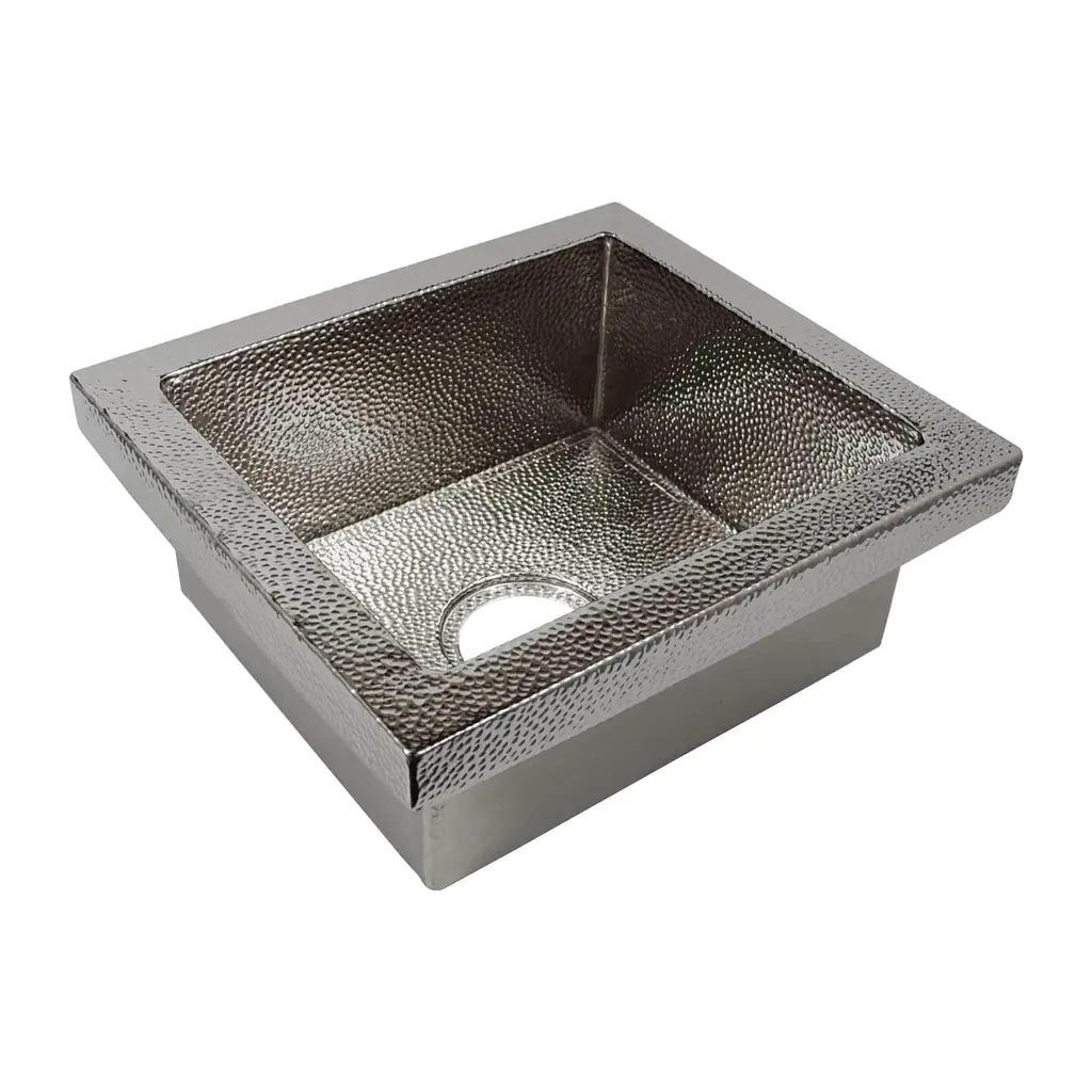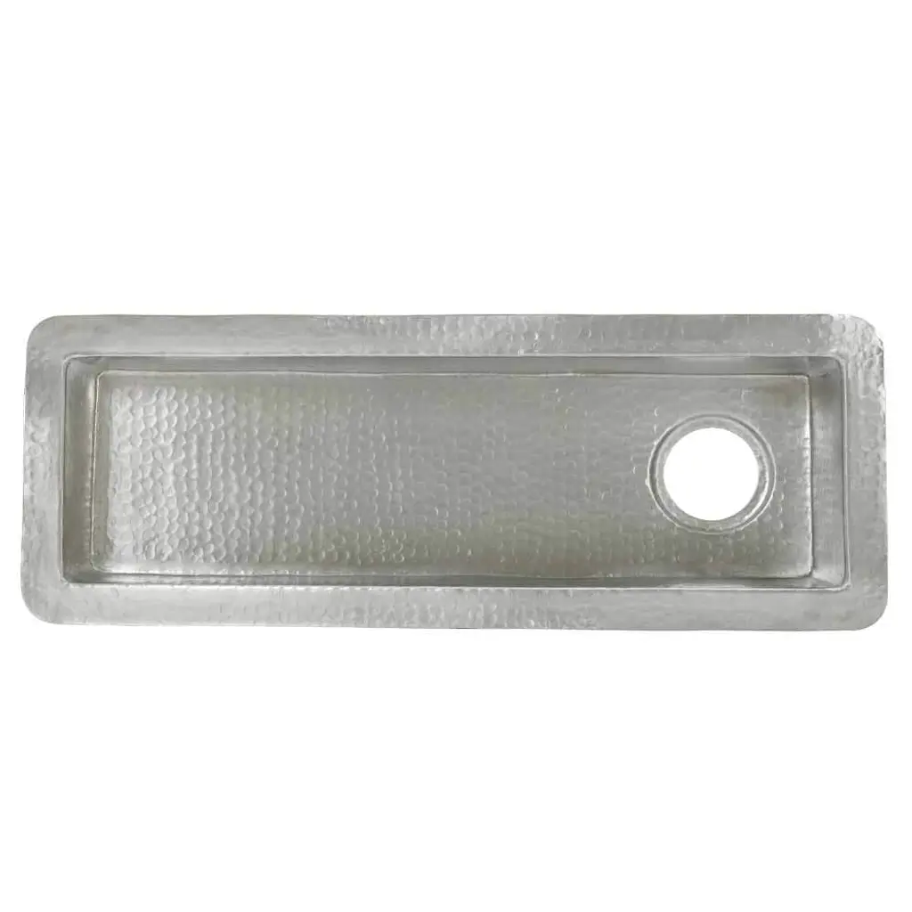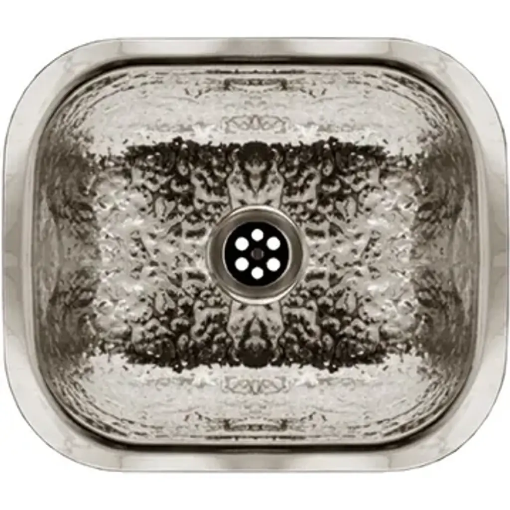 Whitehaus Collection's decorative prep sinks are small in size but bold in presence.Available in the most luxurious designs and finishes on the market showcase any one of these works of art in your home.13” Rectangular undermount entertainment/prep sink with hammered texture surface. It has a 2" center drain location, no overflow.