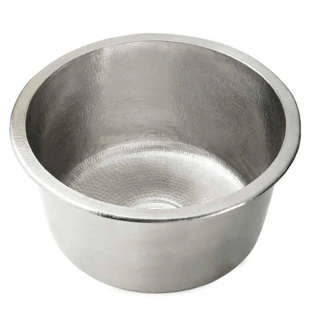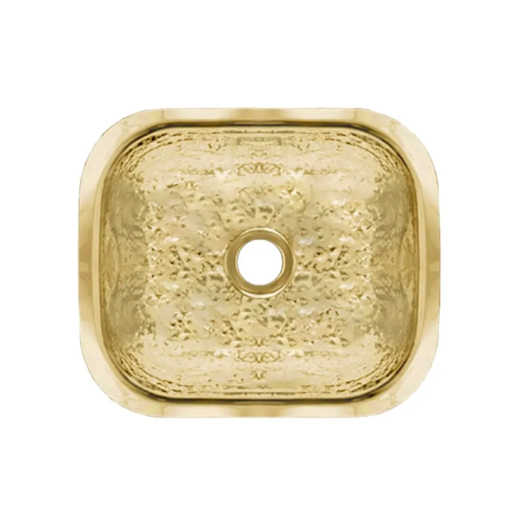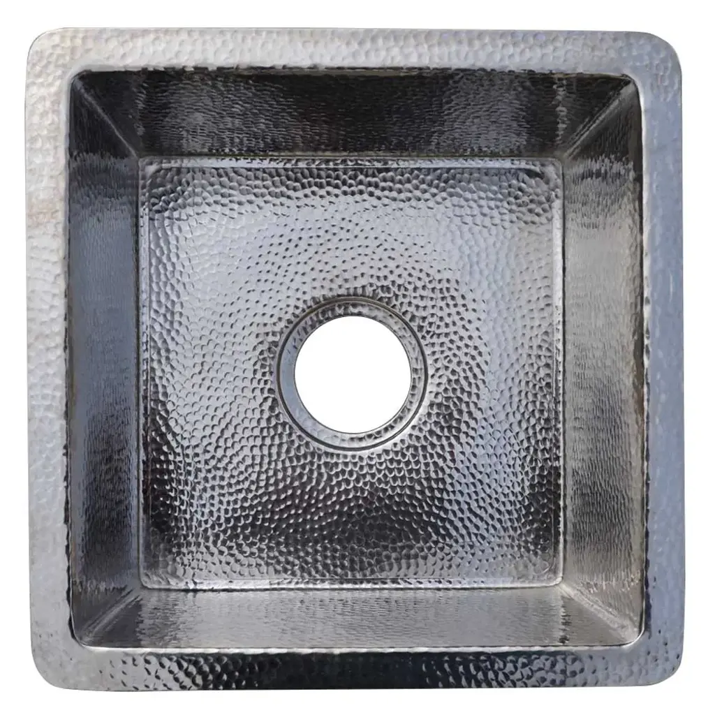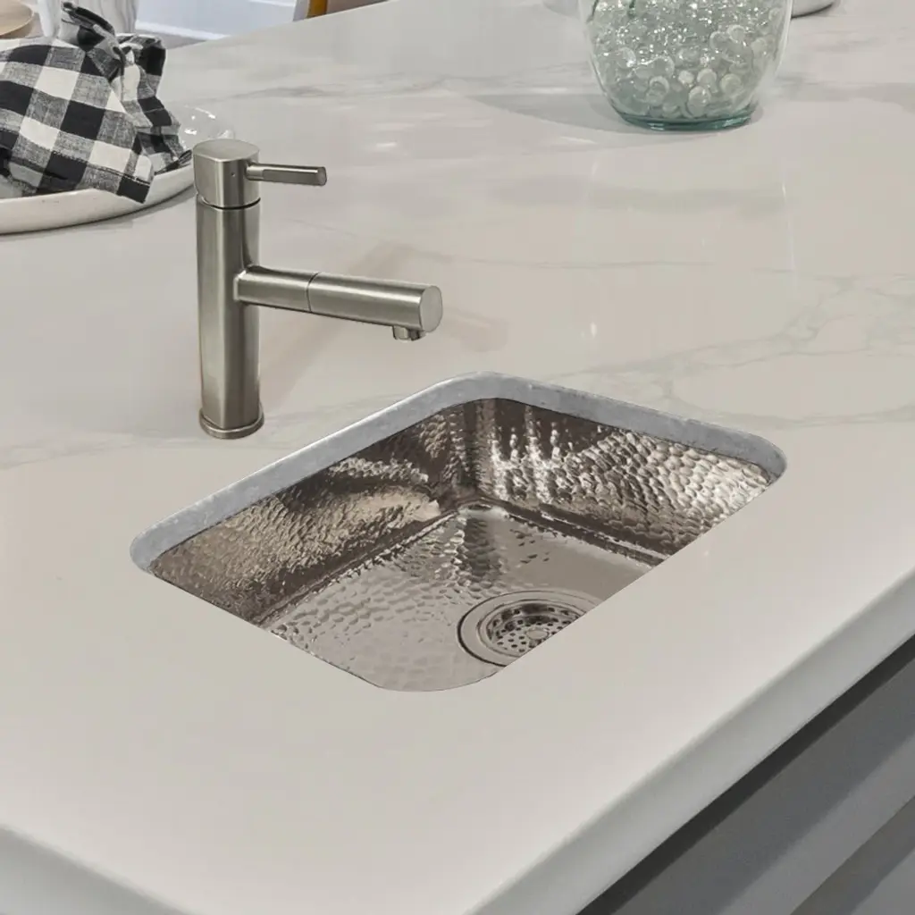 Whitehaus Collection's decorative prep sinks are small in size but bold in presence.Available in the most luxurious designs and finishes on the market showcase any one of these works of art in your home.13” Rectangular undermount entertainment/prep sink with hammered texture surface. It has a 2" center drain location, no overflow.