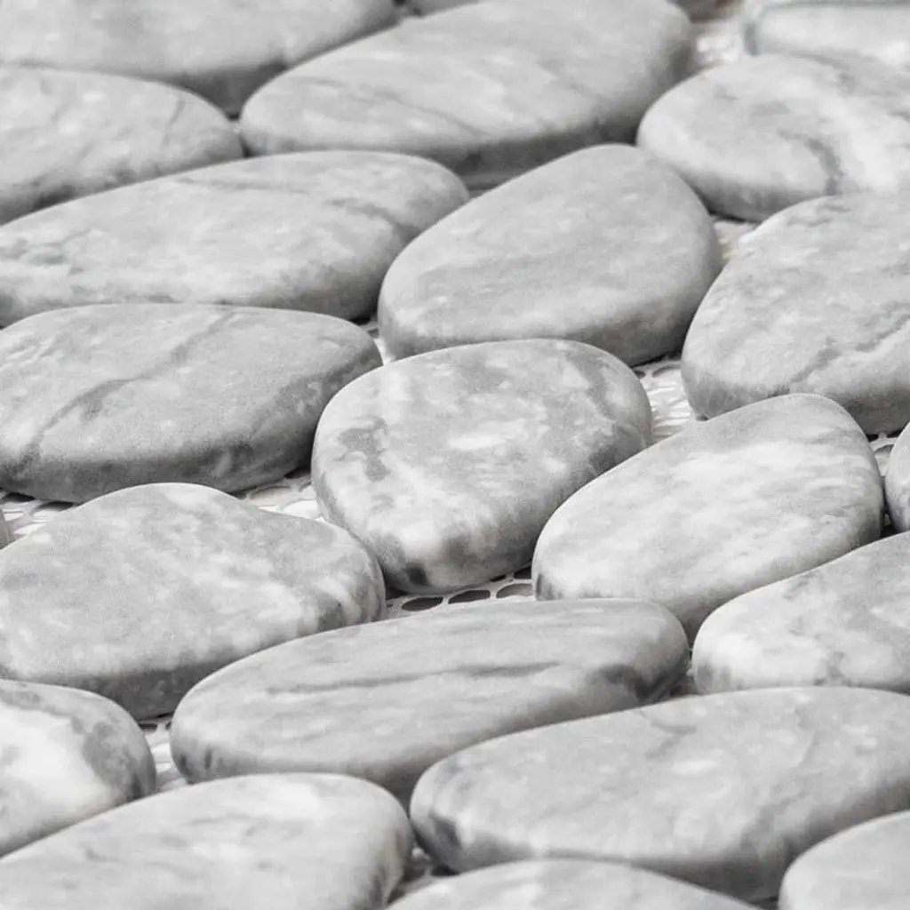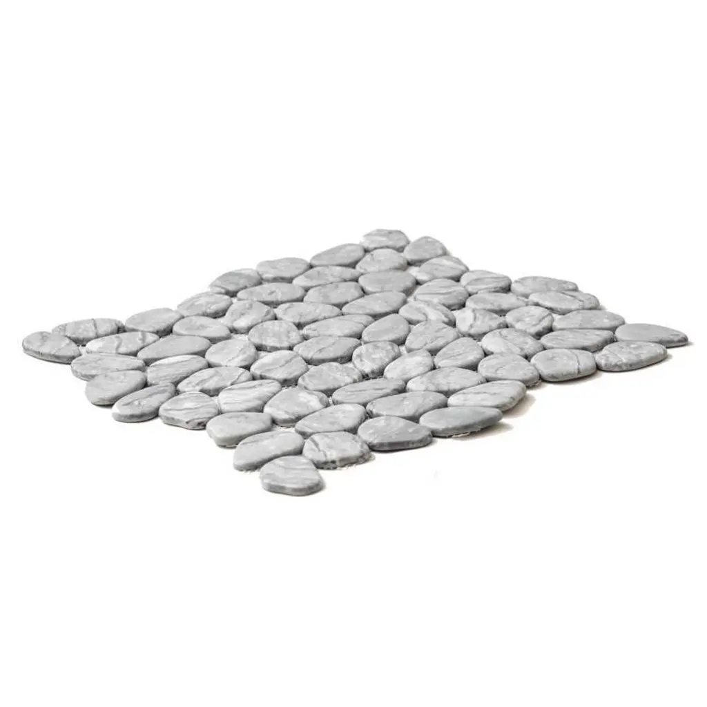 Inspired by The Tile Life Glass Collections, the Recycled Cenote Pebble installations bring you one step closer to the most modern glass kitchen, bathroom, and living room tile decorations. FEATURES: Glass tile for flooring and wall applications Glass pebbles and rocks mosaic tile Mesh backed Impervious and waterproof V3 Moderate variation PEI 2 Matte glass Easy to install 13" x 13" pebbles/ rocks glass tiles Ideal for backsplash, bathroom, shower, floor, wall Recycled Cenote Pebble is offered in Smoke, Blanco, Blend, Charcoal, Crema, Graphite, and Ocean DIMENSIONS: Mosaic sheet: 12.75-inch x 12.75-inch Overall product weight: 57.75 lb. Surface area per carton: 14 square feet